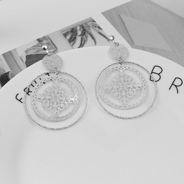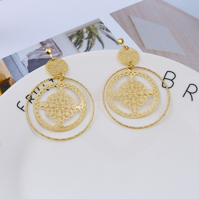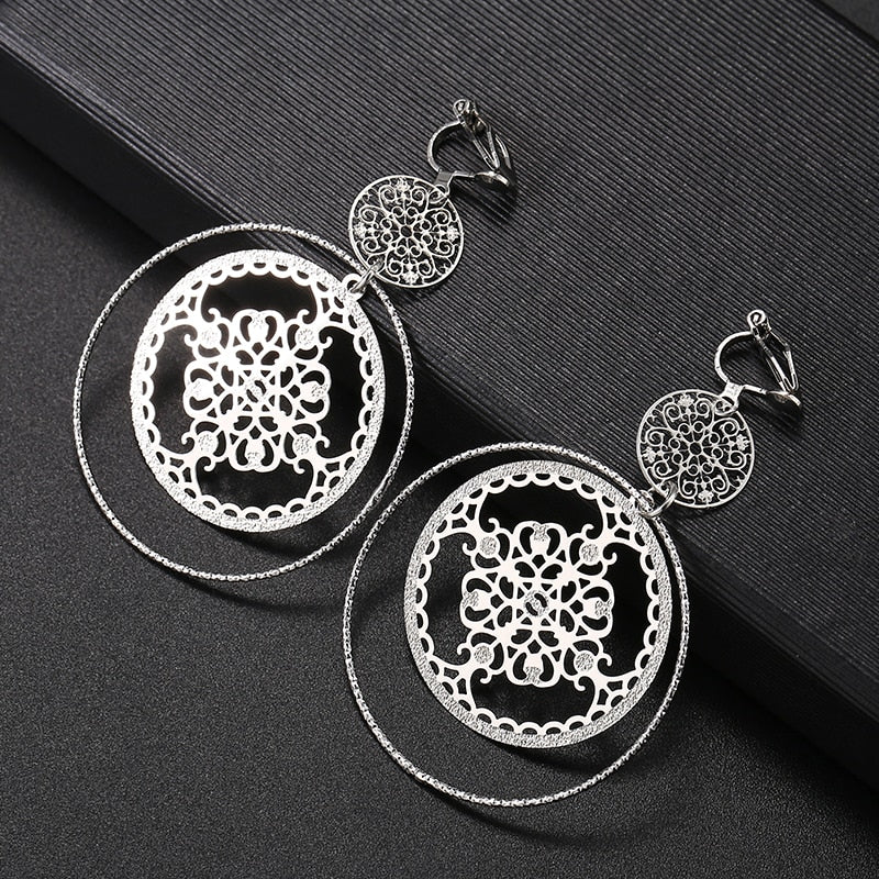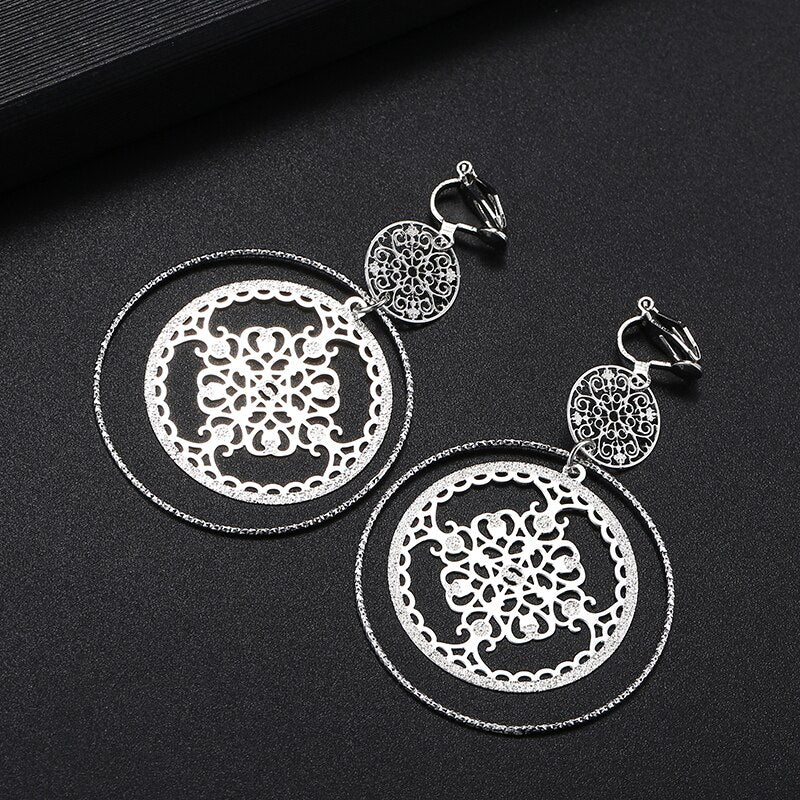 Hollowed Dsic Textured Round Clip on Earrings No Piercing Gold Color Big Circle Hoop Ear Clips