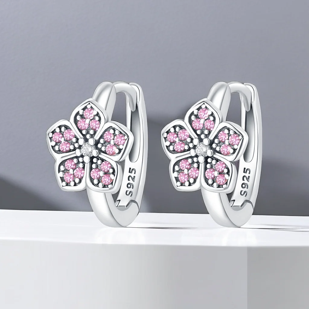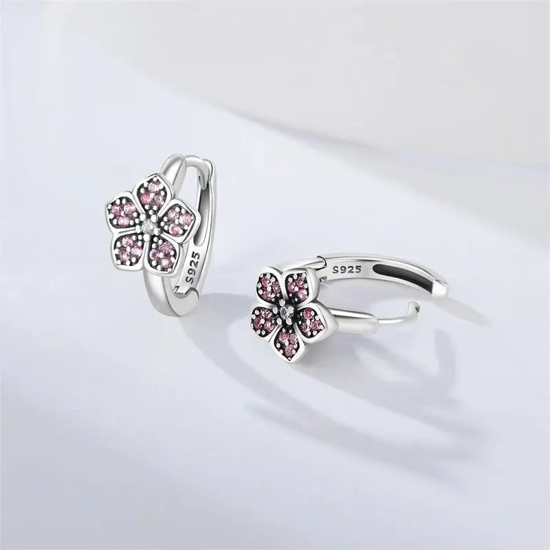 Hot Sale 100% Real 925 Sterling Silver Inlay Zircon Flower Earring For Women Making Jewelry Gift Wedding Party Engagement