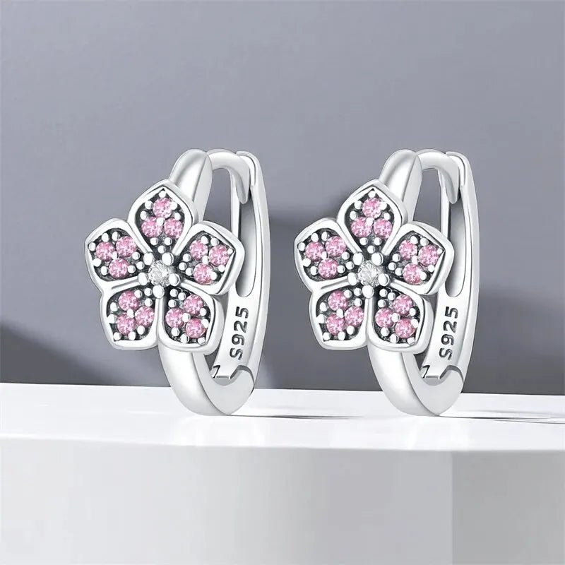 Hot Sale 100% Real 925 Sterling Silver Inlay Zircon Flower Earring For Women
