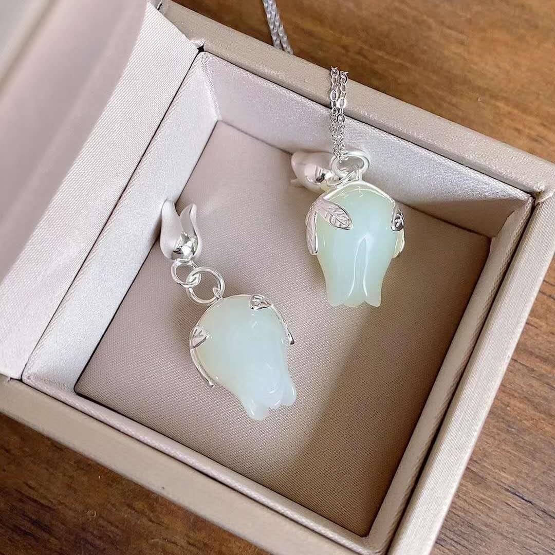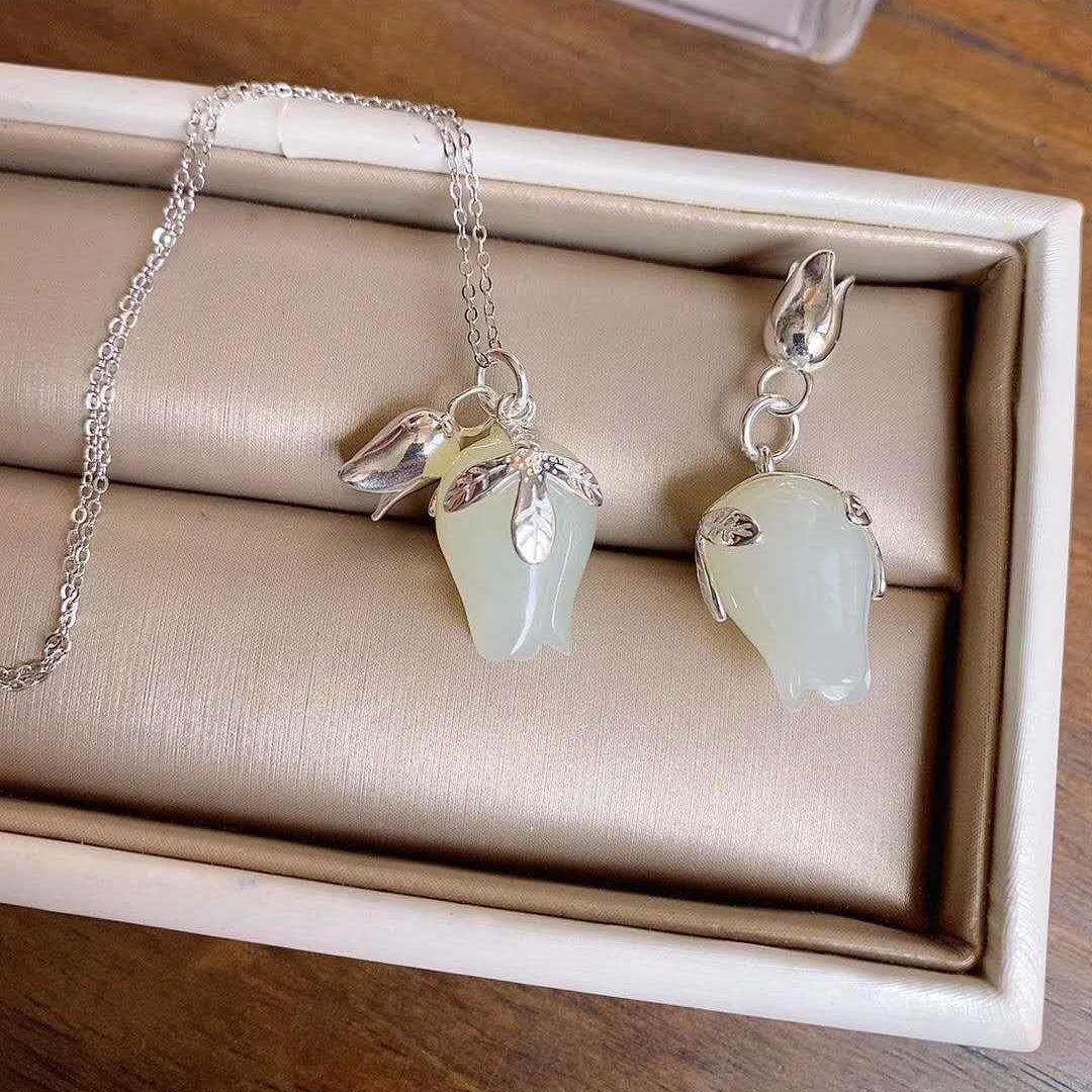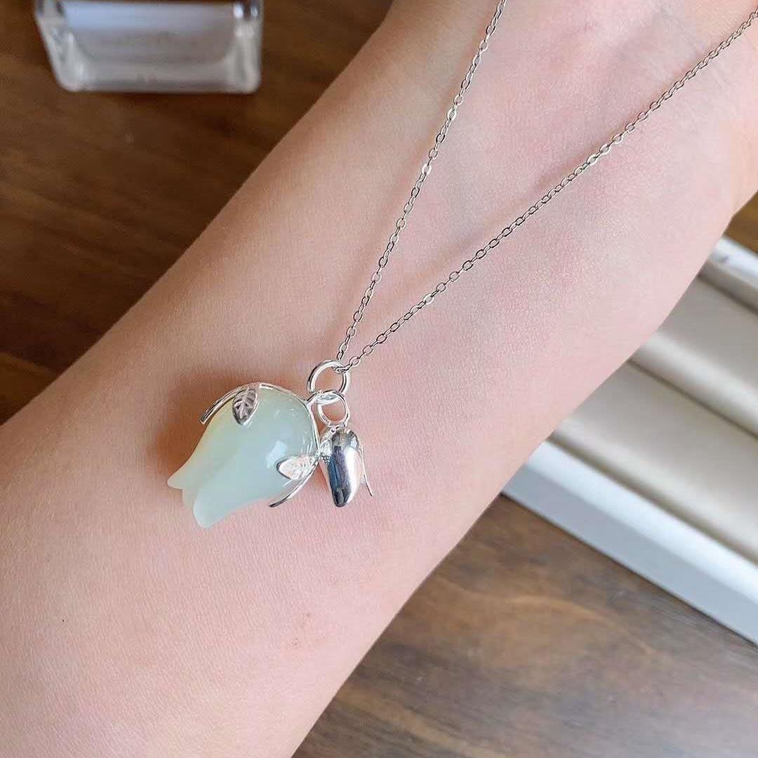 Independent design new natural Hetian white magnolia flower necklace pendant