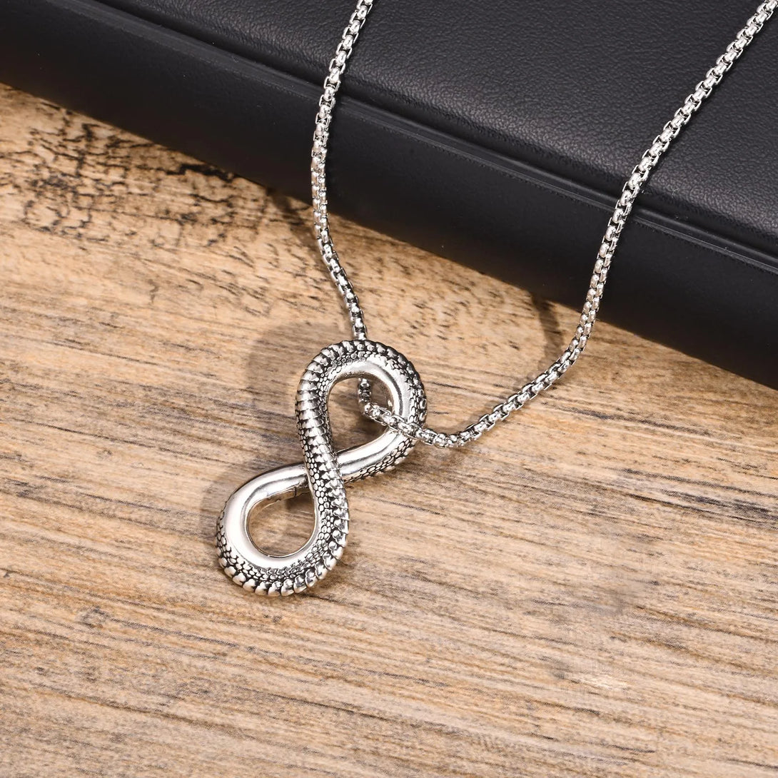 Infinite Symbol Snake Pattern Pendant Necklace for Men Boys