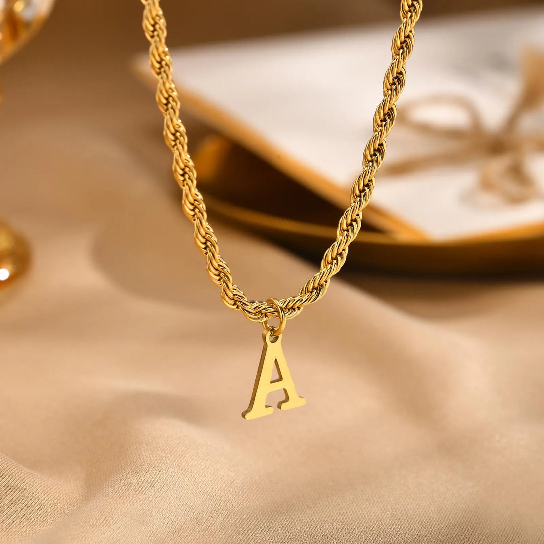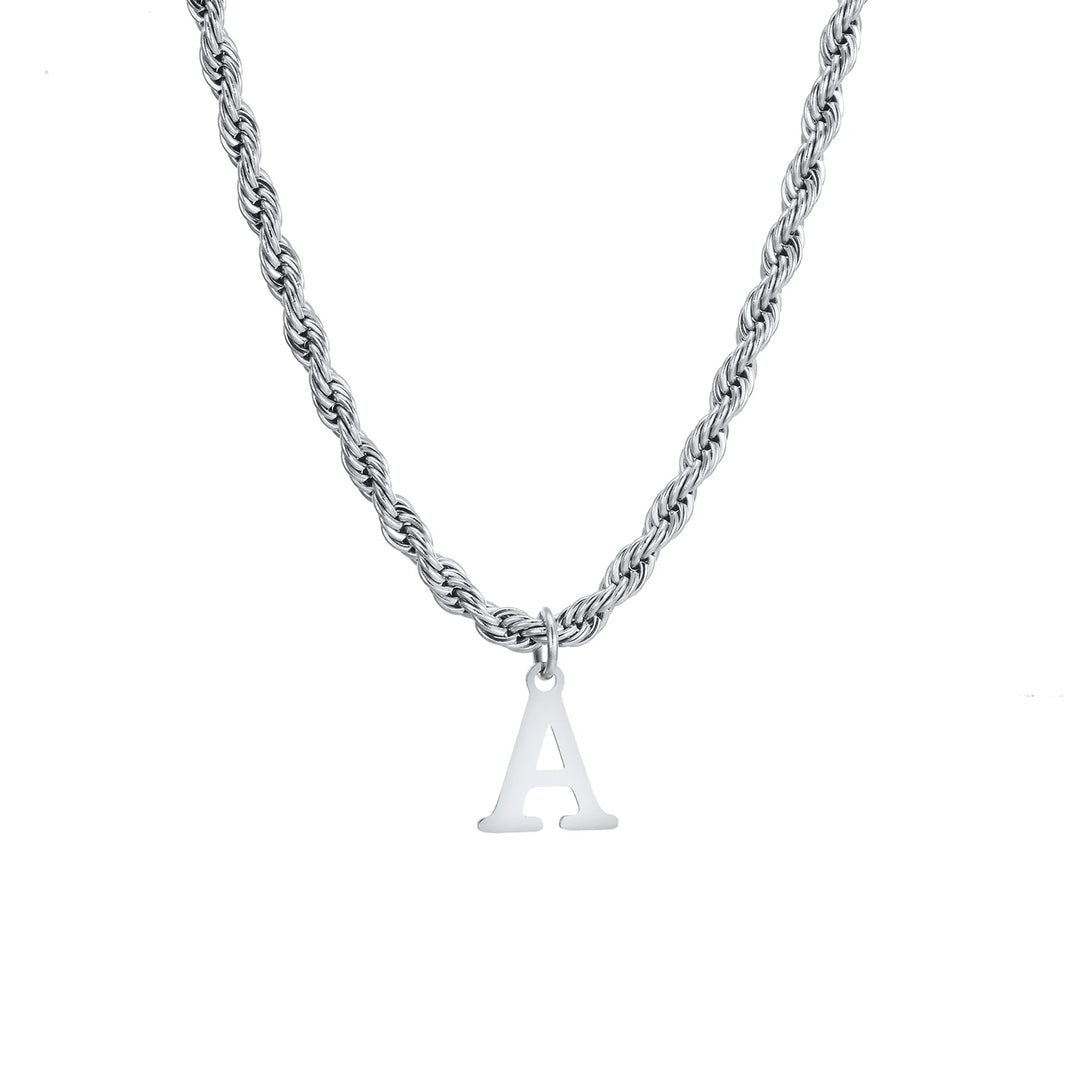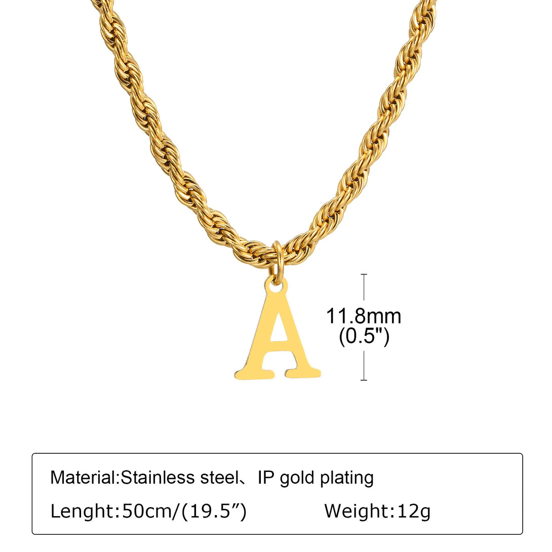 Initial Necklaces for Men, Stainless Steel A-Z Letters Alphabet Charm Pendant with Twisted Rope Chain, Unisex Collar