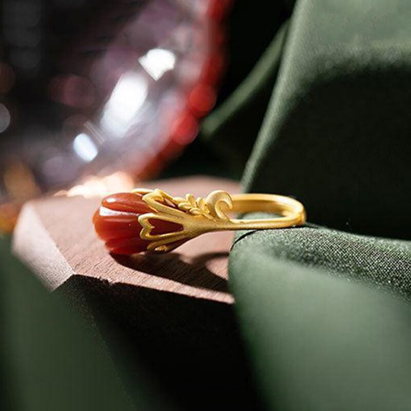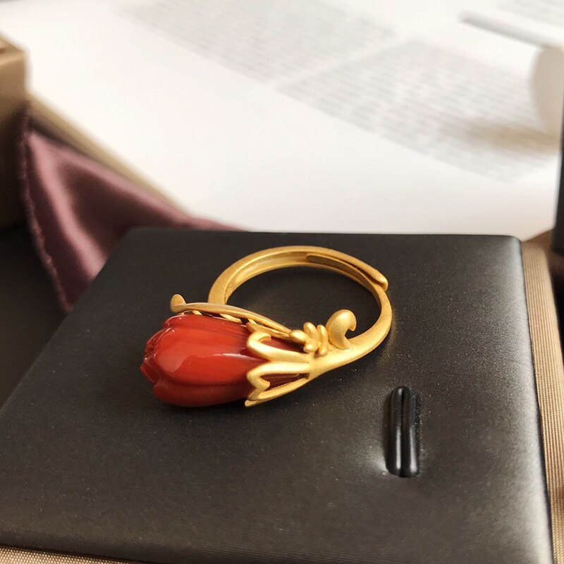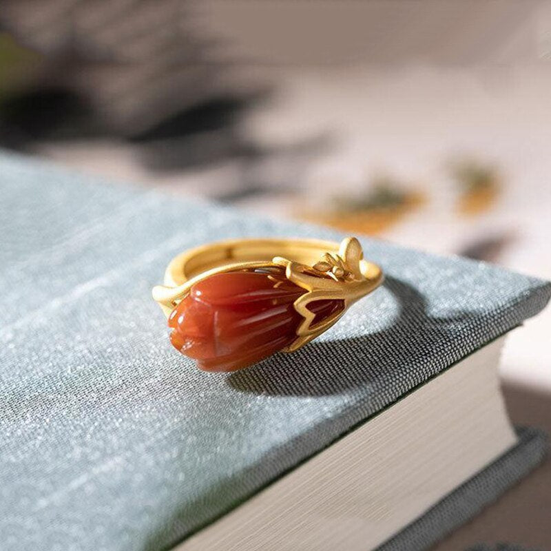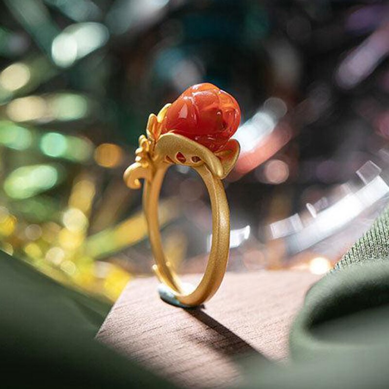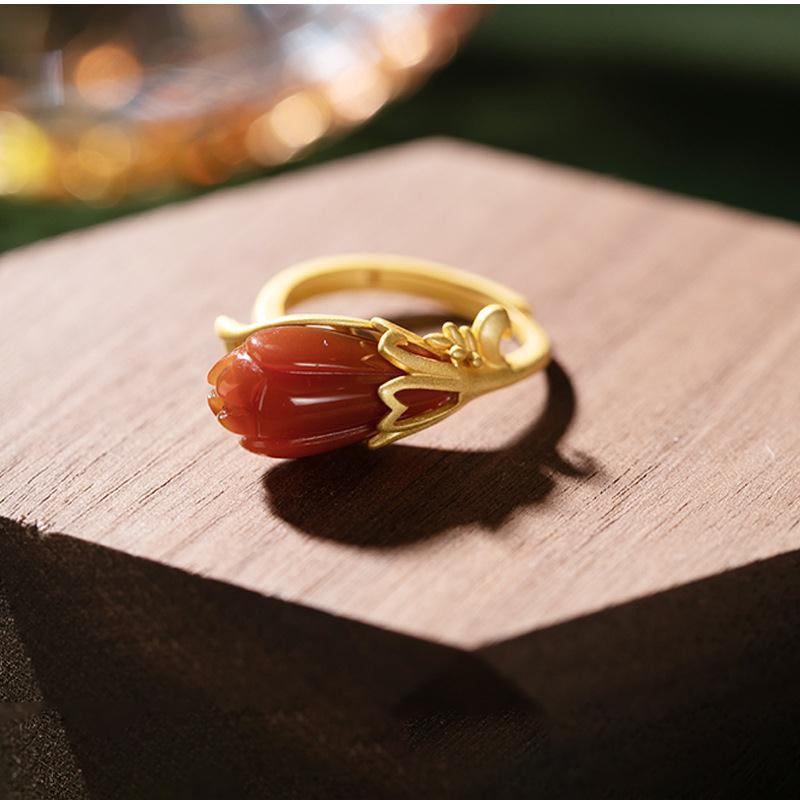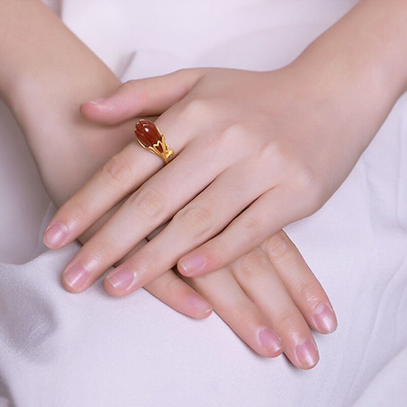 Inlaid Magnolia Orchid High Quality Retro Temperament Ms. Opening Adjustable Ring