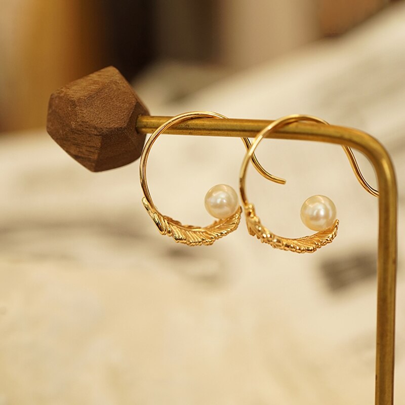 Drop Earrings-Inspiration design golden inlaid geometric pearl earrings for women classic exquisite luxury ladies jewelry clothing accessories