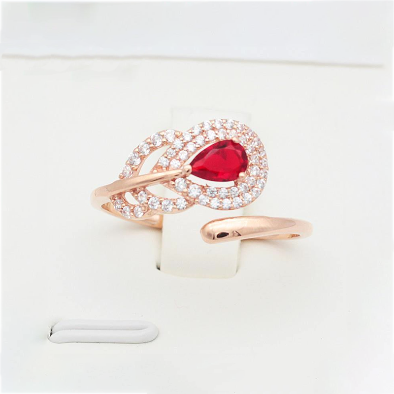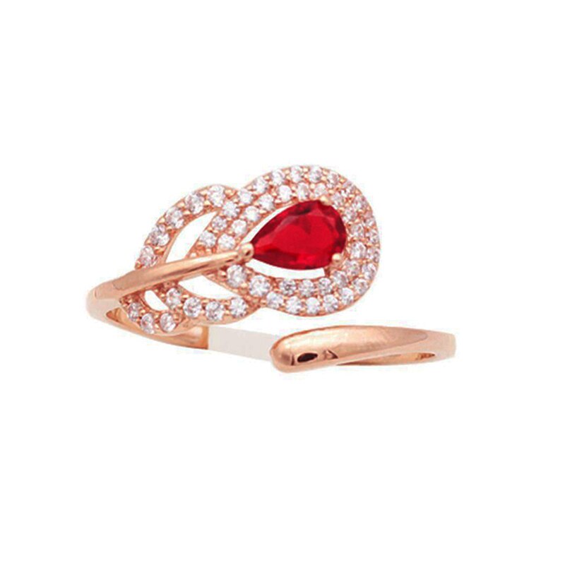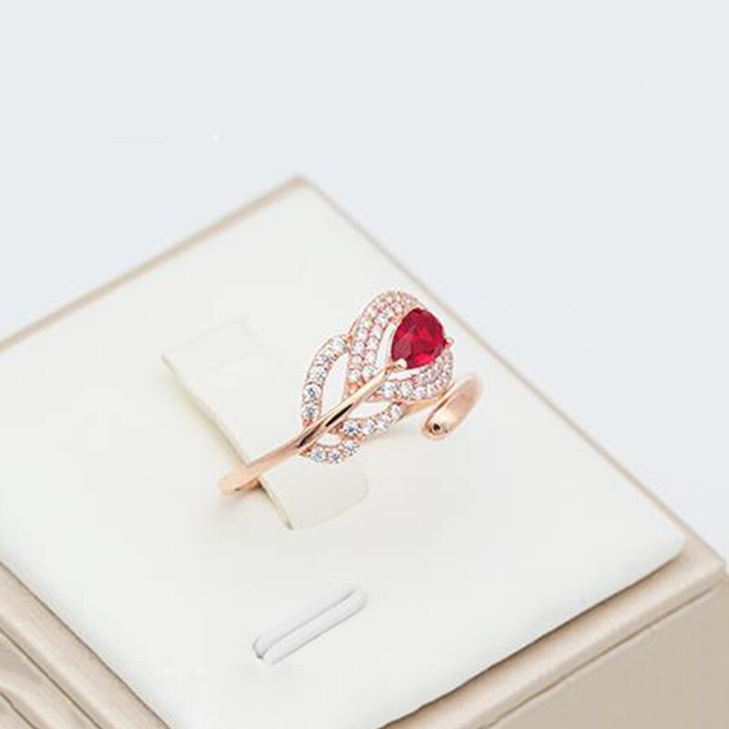 Cocktail Ring-Inspiration design silver inlaid red gemstone feather earrings for women opening adjustable light luxury shiny charm jewelry