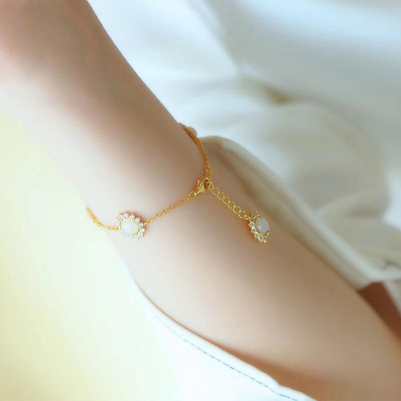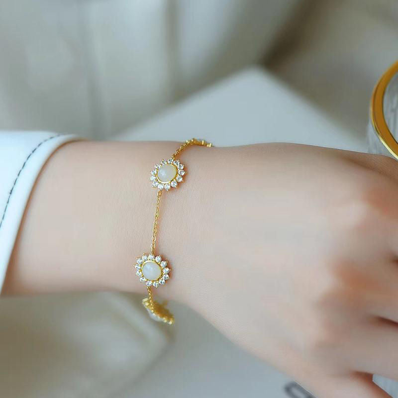 Bracelets-Inspired design silver inlaid natural Hetian chalcedony daisy sun flower bracelet elegant fresh and exquisite women's jewelry