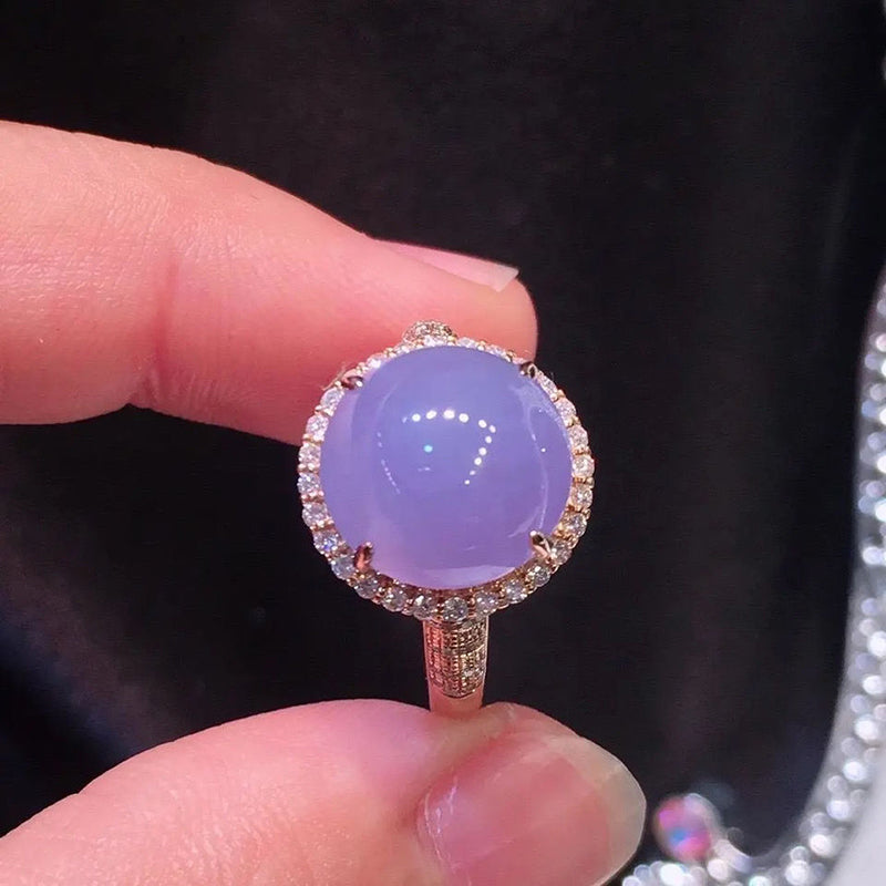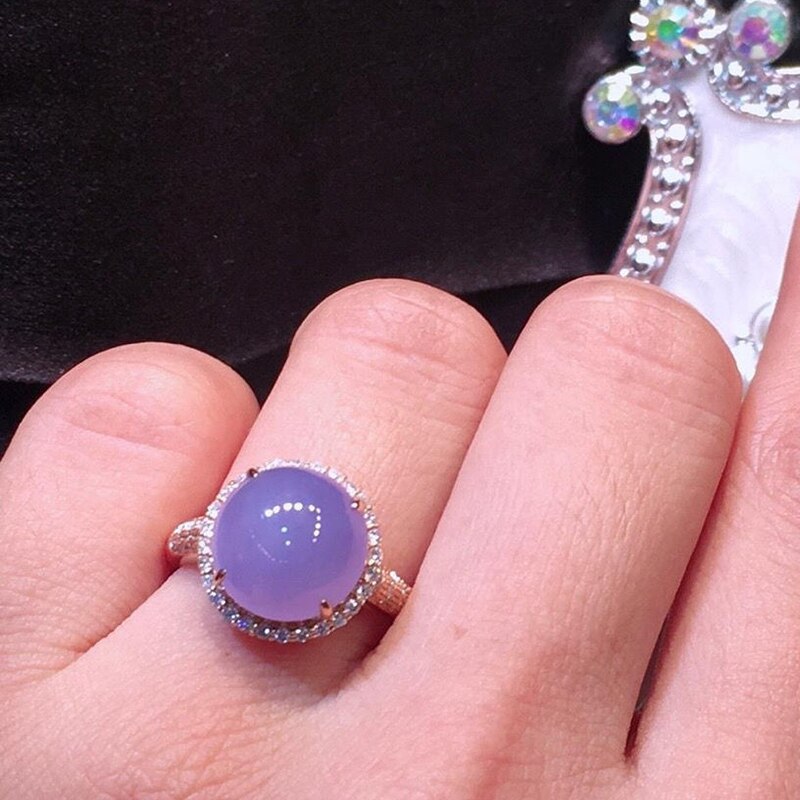 Cocktail Ring-Inspired design silver inlaid natural ice chalcedony oval violet opening adjustable ring elegant charm ladies jewelry