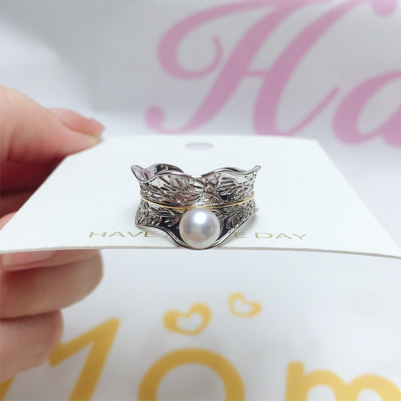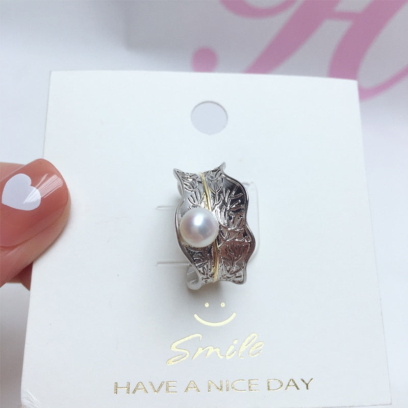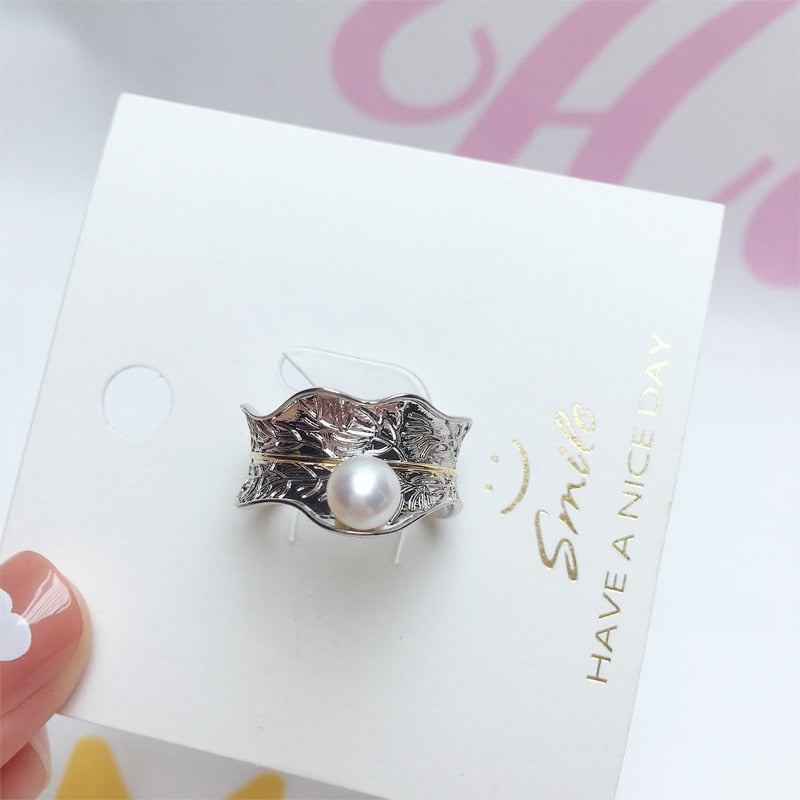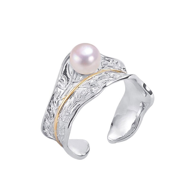 Pearl Rings-Italian Craft Gold Gild Pearl Ring New Trendy Elegant 100% Natural Pearl Geometric Design Female Wedding Ring Jewelry