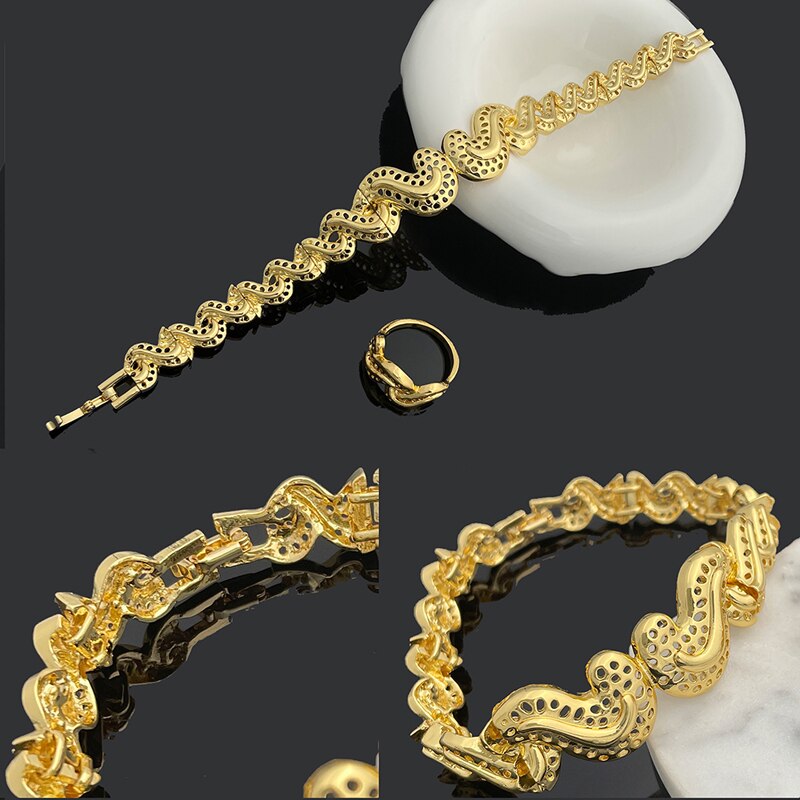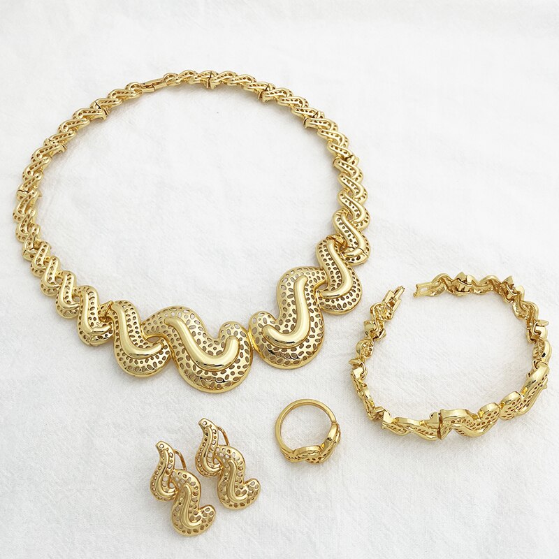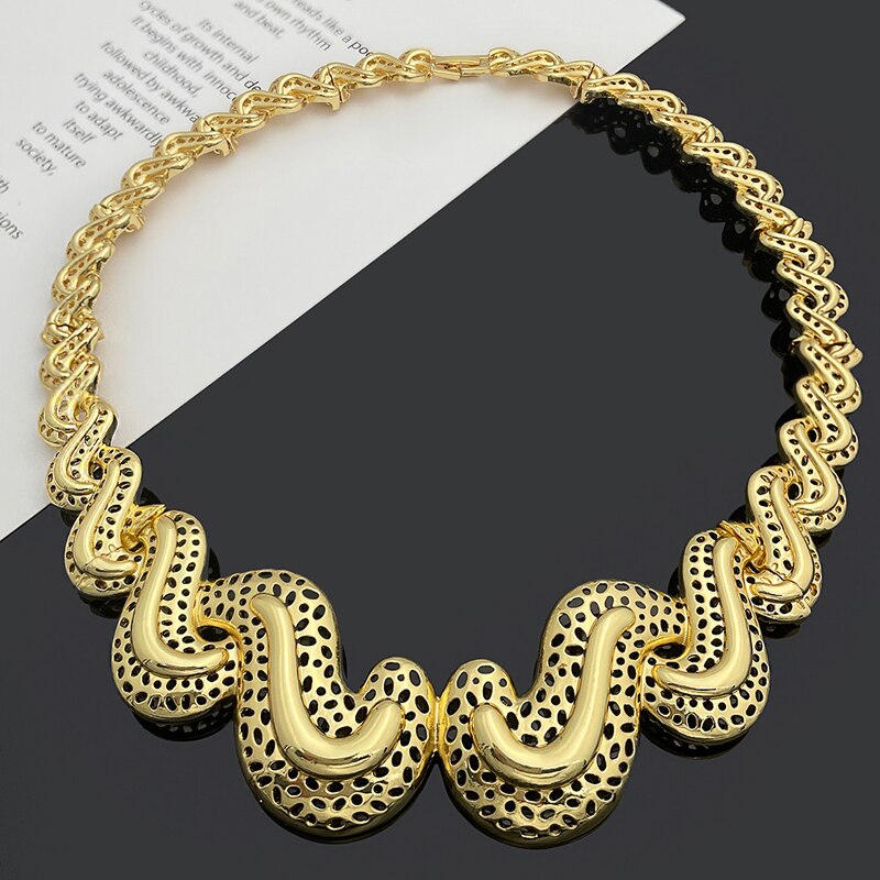 keyword: Gold Color Jewelry Set Snake Pattern Large Necklace Earring Ring Bracelet Set