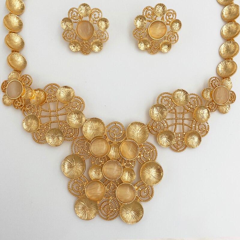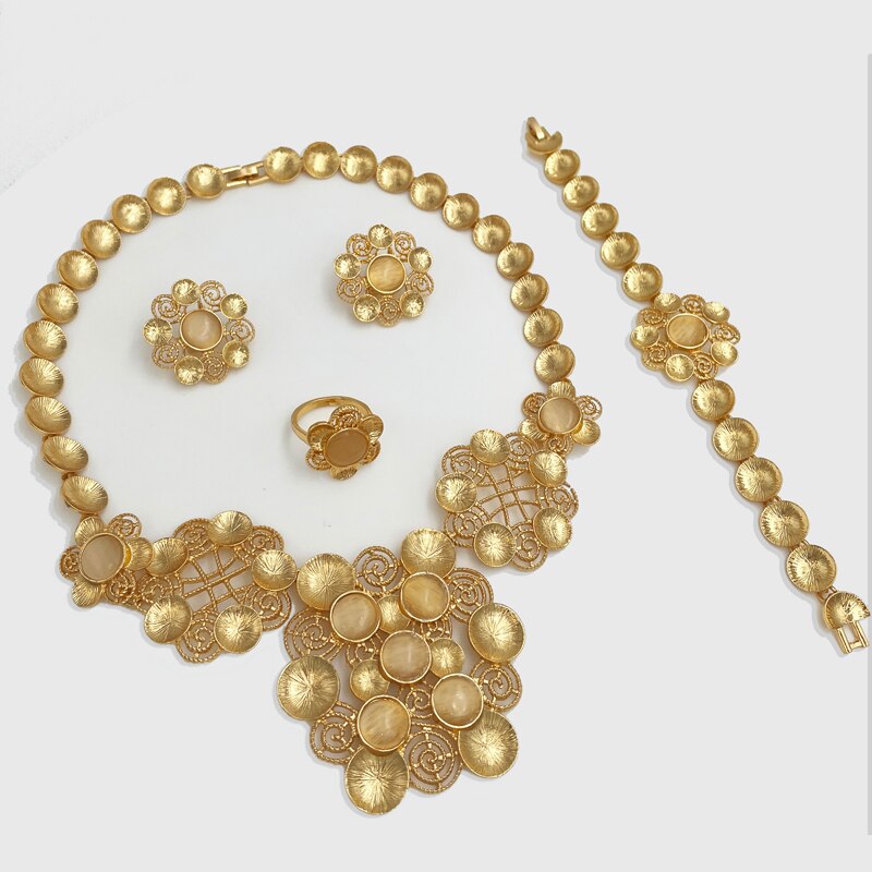 keyword: Gold Plated opals Necklace And Earing Bracelet Jewelry Sets