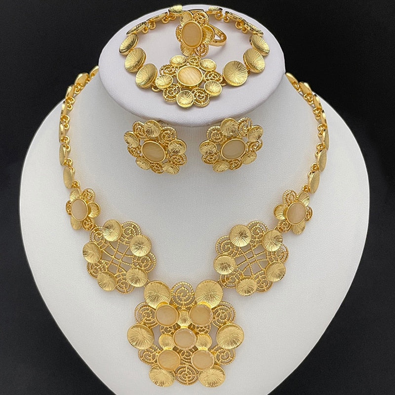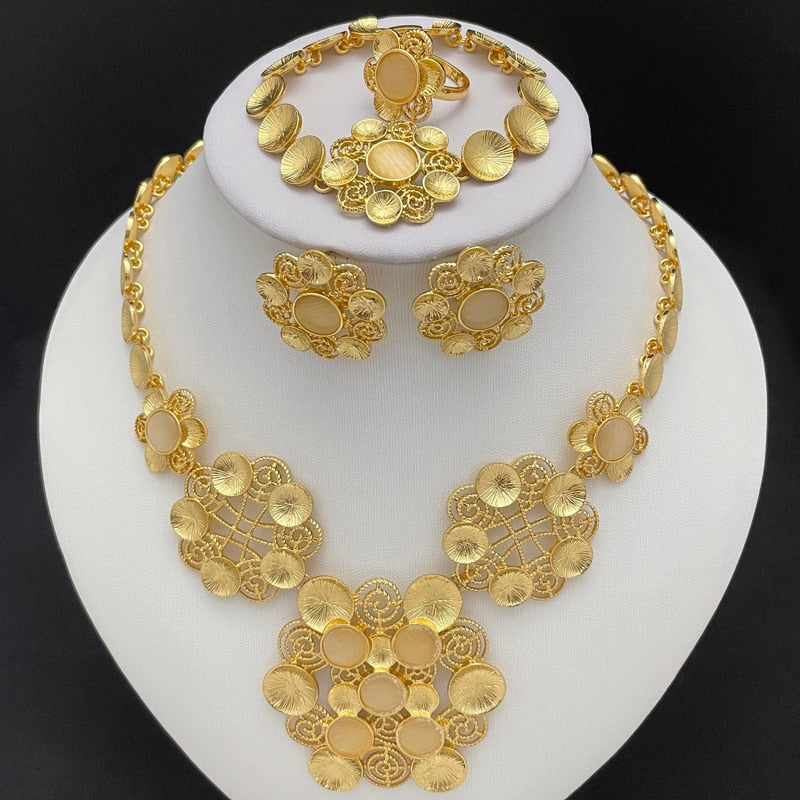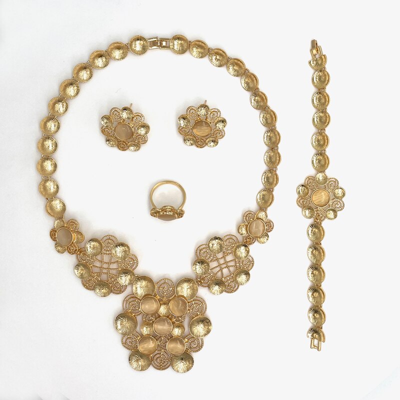 Afraic Jewelry -Italian Gold Color Jewelry Set Necklace Earings Bracelet Ring Set African Bride Jewelry For Women Wedding Party Gifts