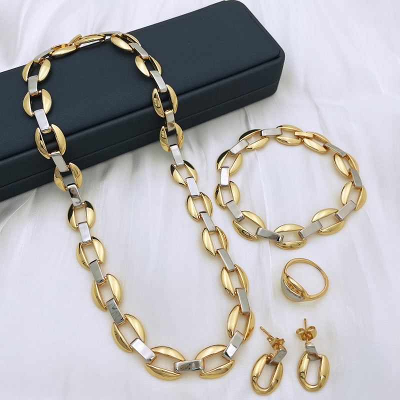 Italian Gold Plated Jewelry Set Fashion Jewelry Necklace Earring Sets For Women
