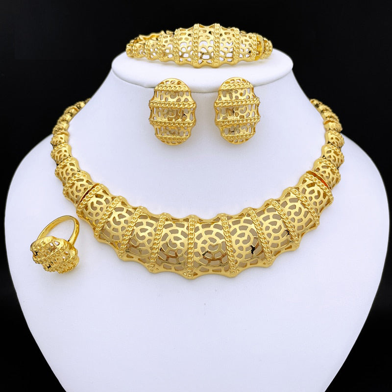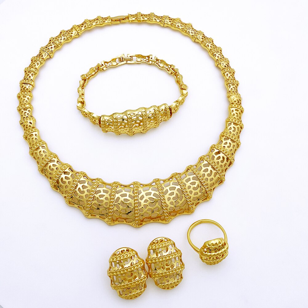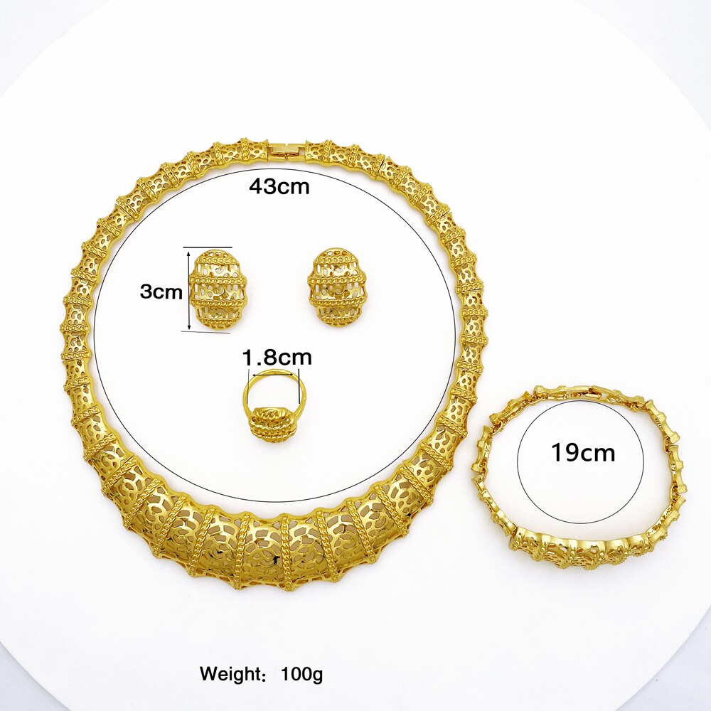 Italian Gold Plated Jewelry Set For Women African Necklace And Earrings Women Bracelet