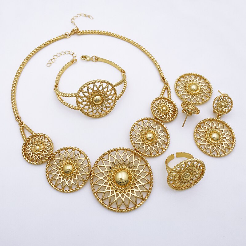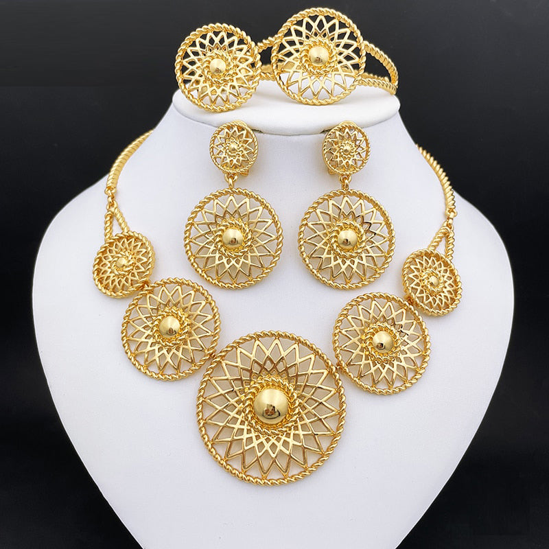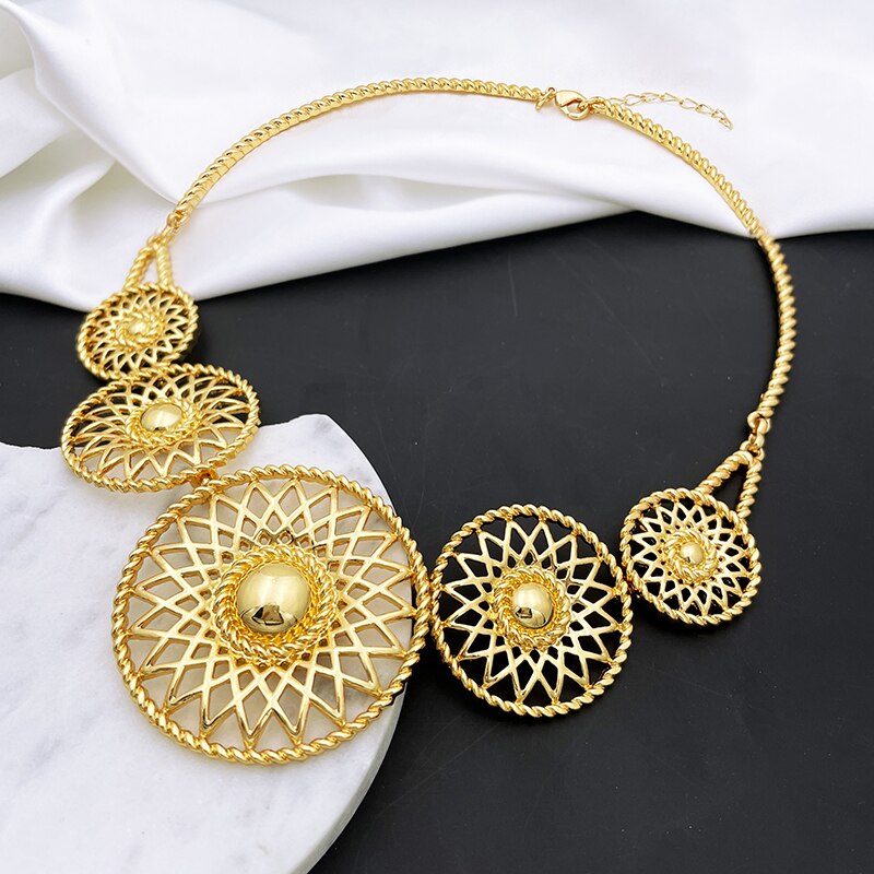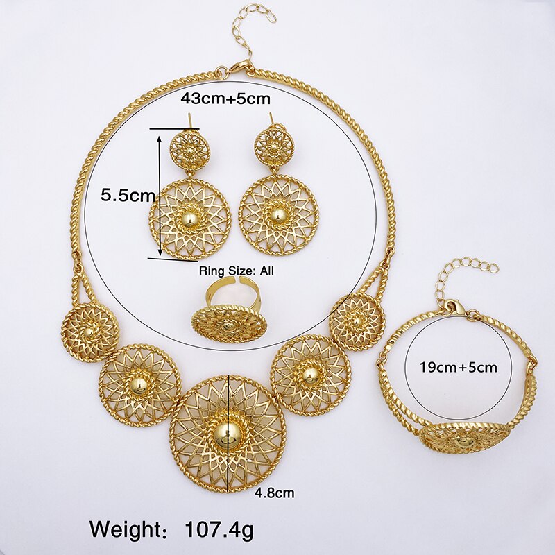 Afraic Jewelry-Italian Gold Plated Jewelry Set Necklace For Women Round Earings Set Jeweliry ensemble