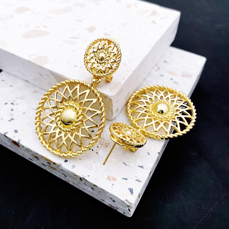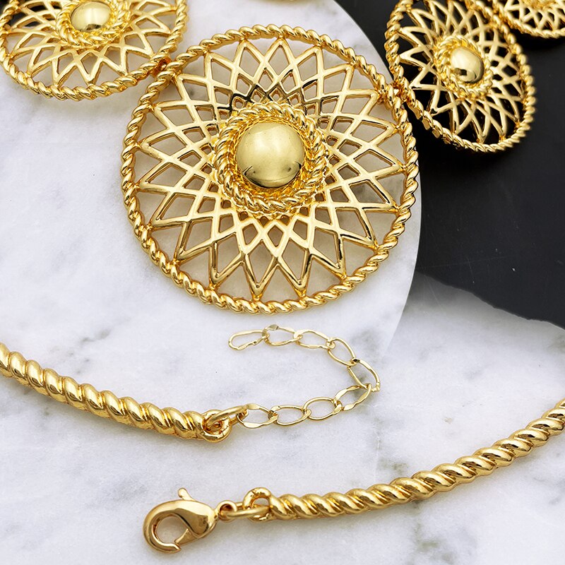 Italian Gold Plated Jewelry Set Necklace For Women Round Earings Set Jeweliry
