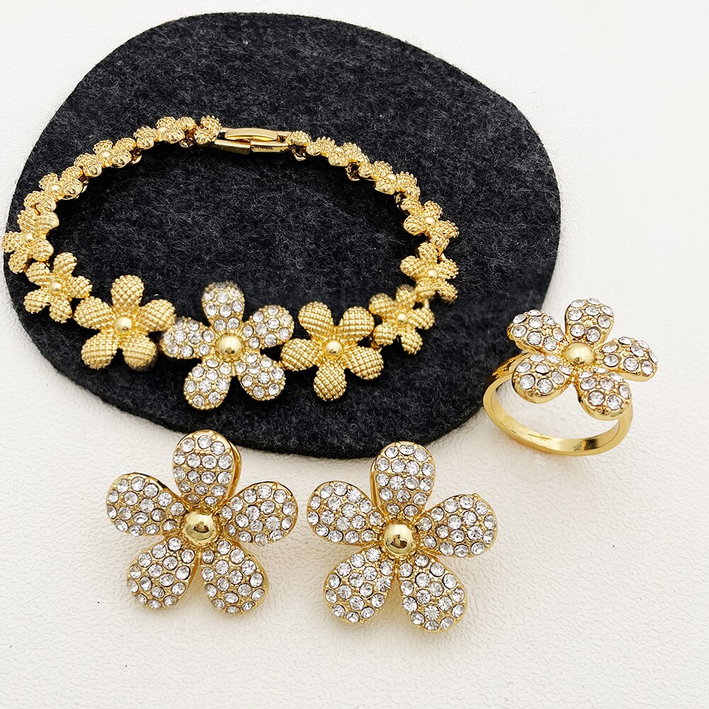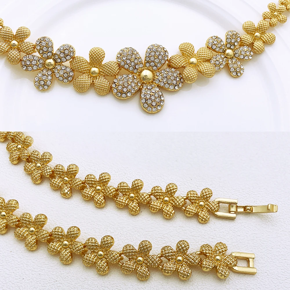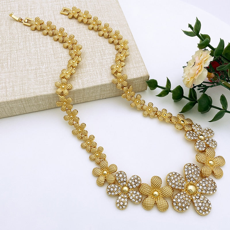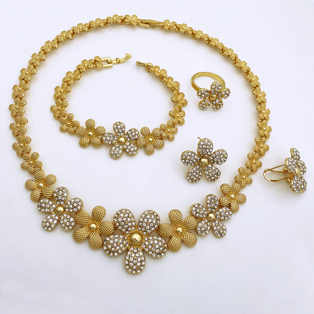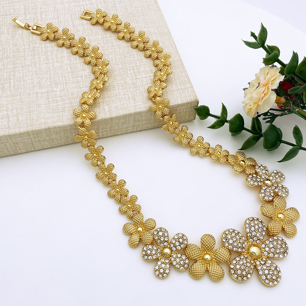 Afraic Jewelry-Italian Gold Plated Jewelry Set Rhinestone Fashion Jewelry Women Necklace And Earrings Set ensembles de