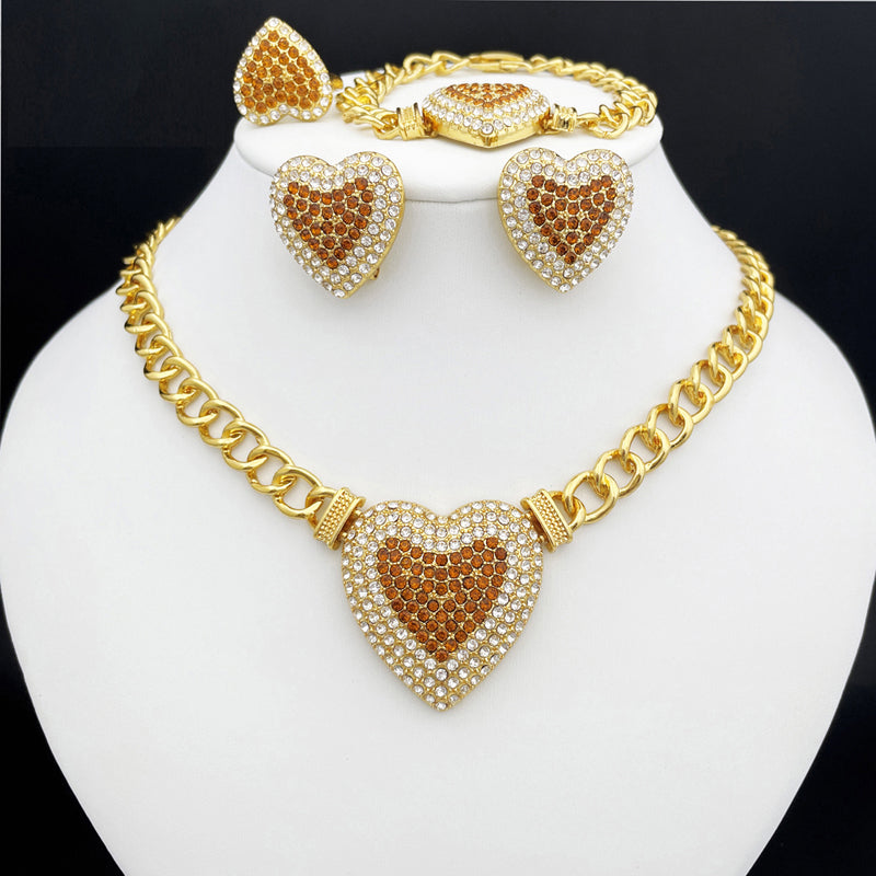 Afraic Jewelry-24k Jewelry Set For Women Heart Necklace And Earrings Charm Bracelet Round Pendant Nigerian Bridal Jewelry Wedding Party Gift