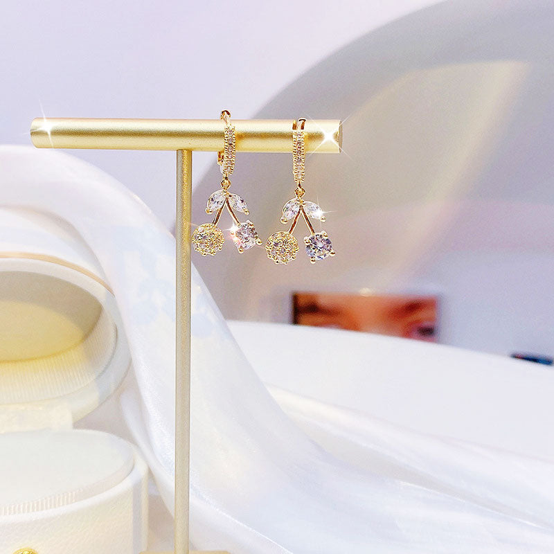 Fashion Earrings- Korea Exquisite Cute Cherry Design 14K Real Gold Plating Ear Stud Elegant Luxury Charm for Lady Trendy Delicate Earrings Gift