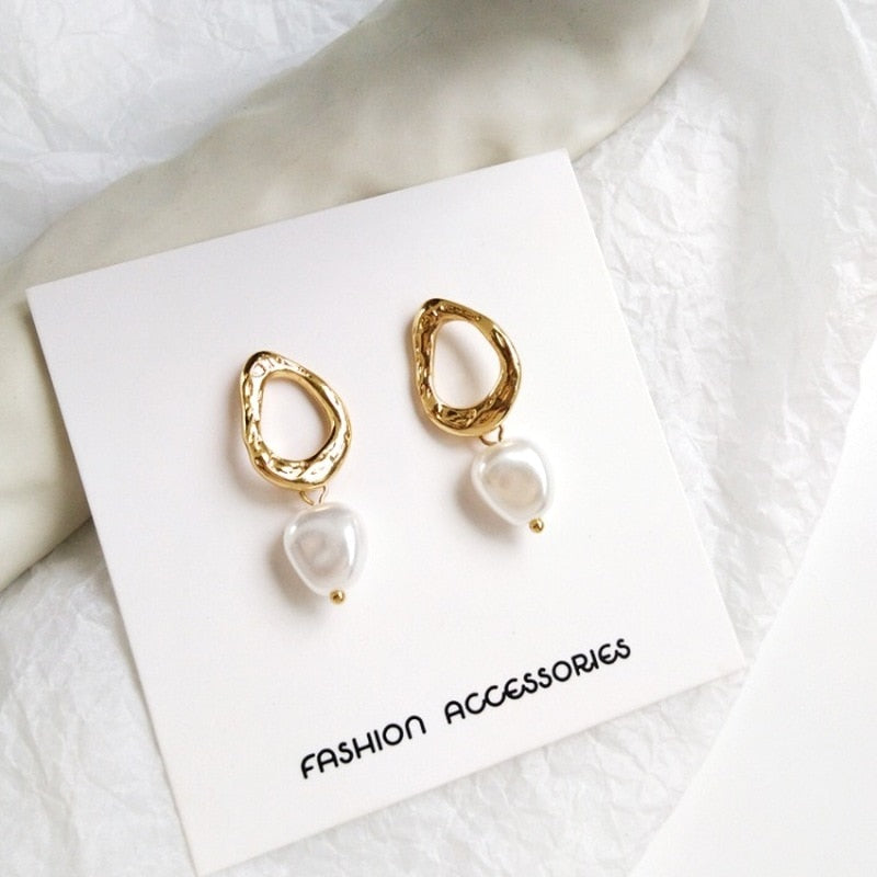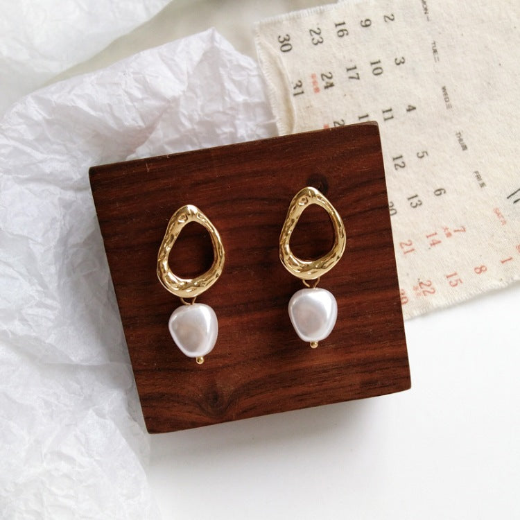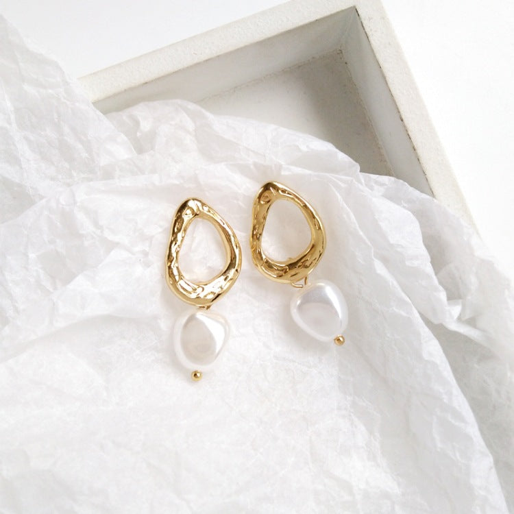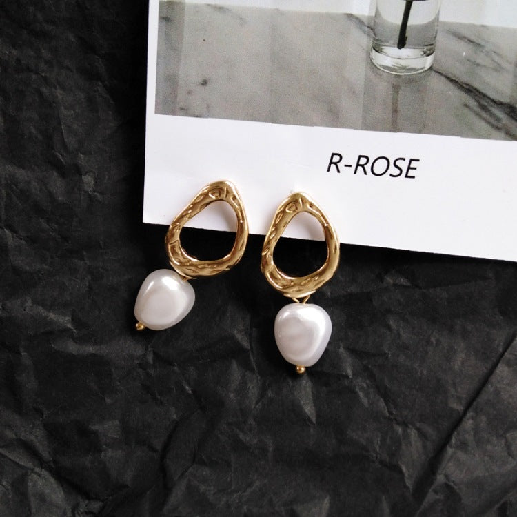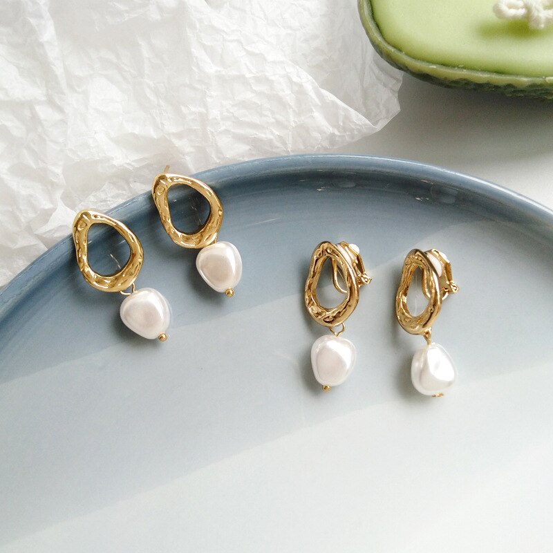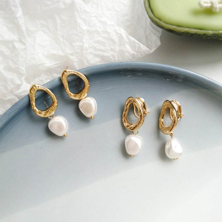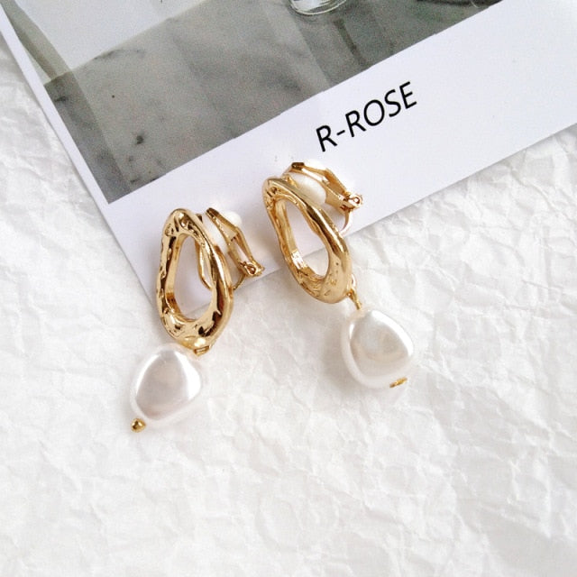 Fashion Earrings-Korea Simple Personality Irregular Geometric Clip Earrings Fashion Temperament Imitation Pearl Jewelry Girl Women's Accessories