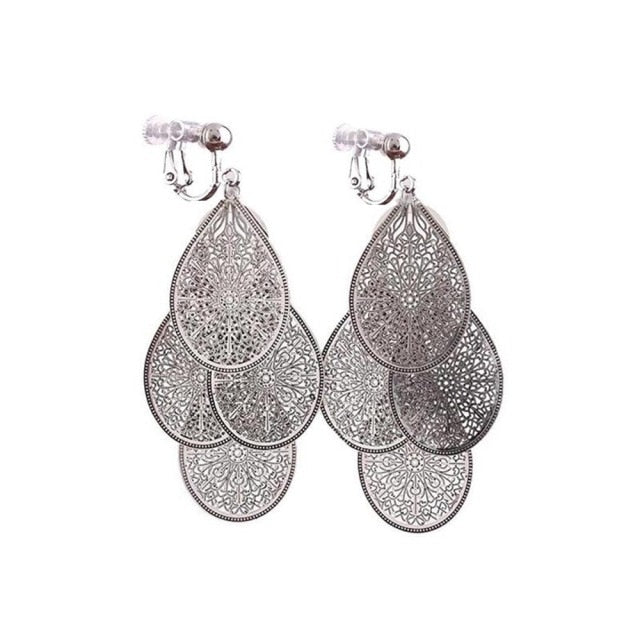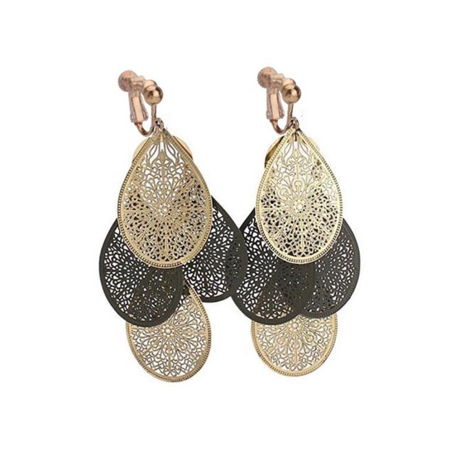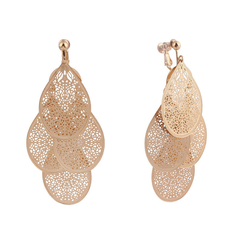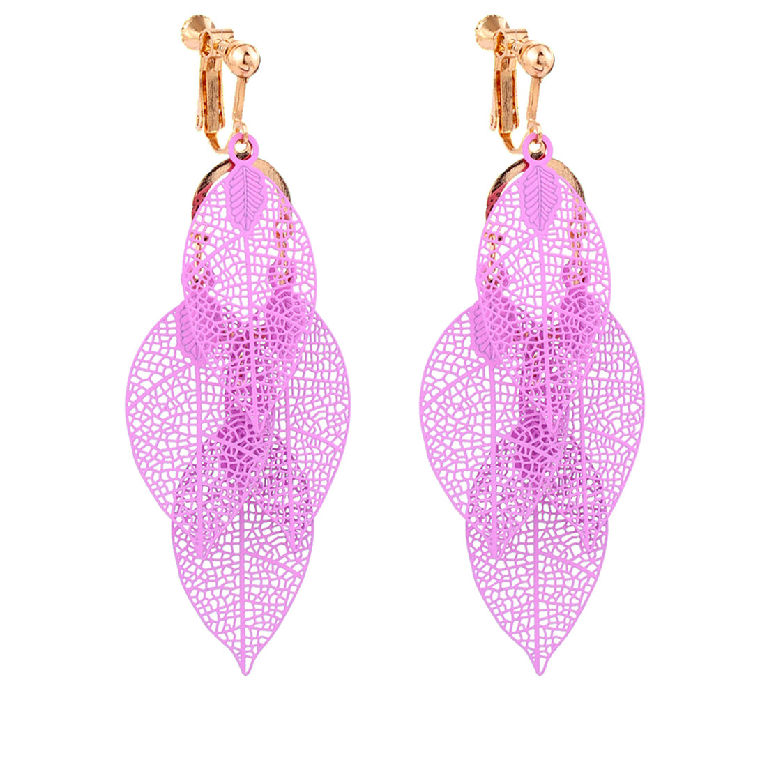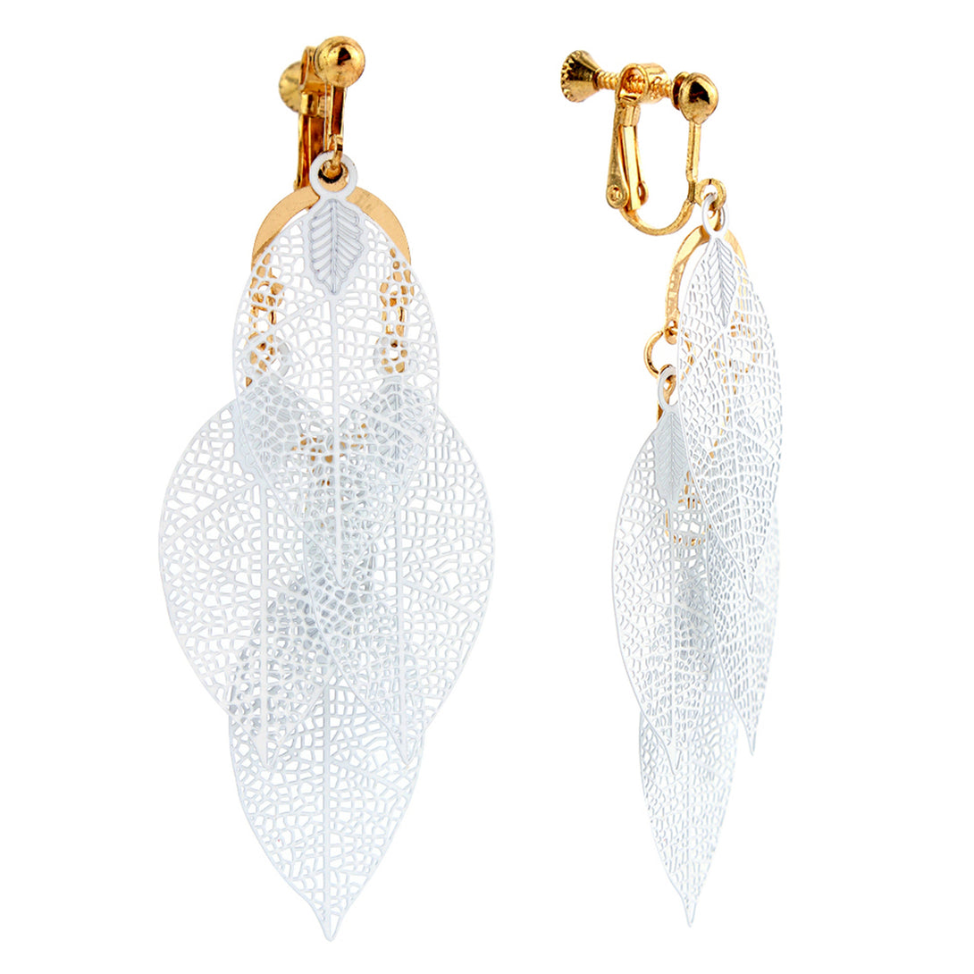 Pendant-JUN Korea Style Gold Color Copper Material Leaf Shape Clip on Earrings Without Pierced Elegant Cuff Ear Clip Anti-allergy