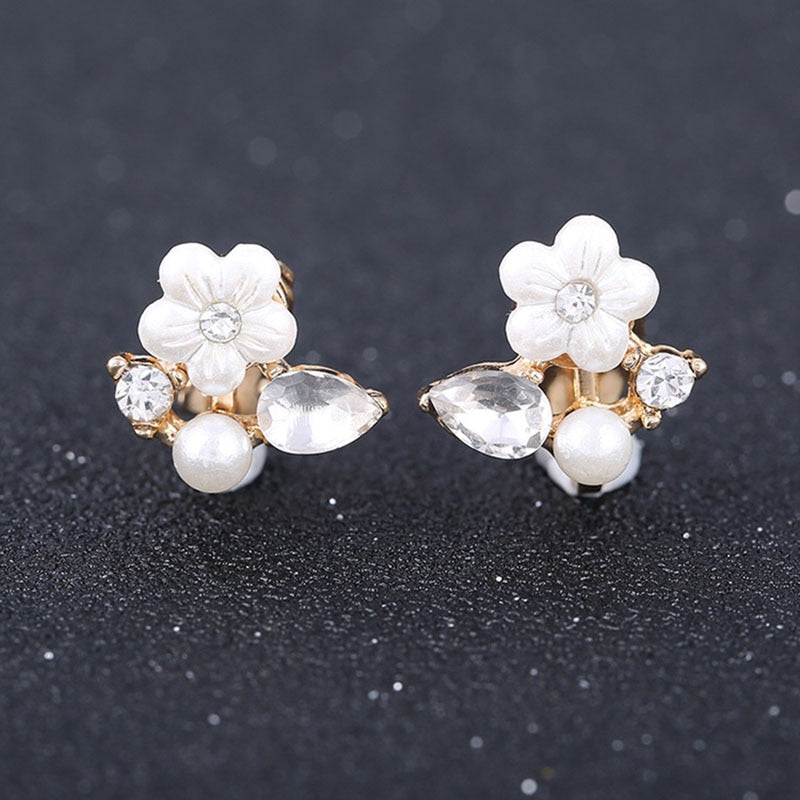 Pendant-Fashion Hot Sale Korea Zircon flower Shape Statement Clip On Earrings no pierced With Crystal Rhinestone Wedding Jewelry