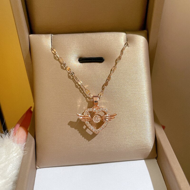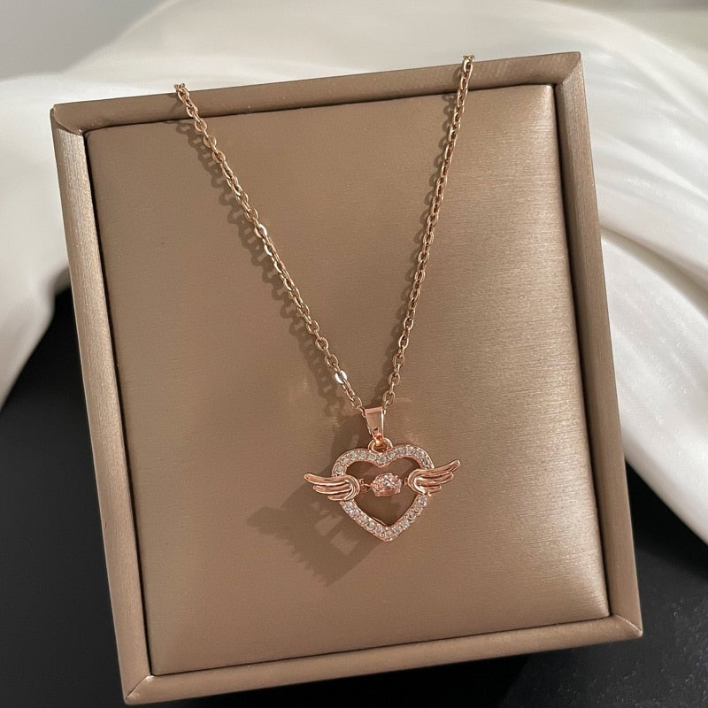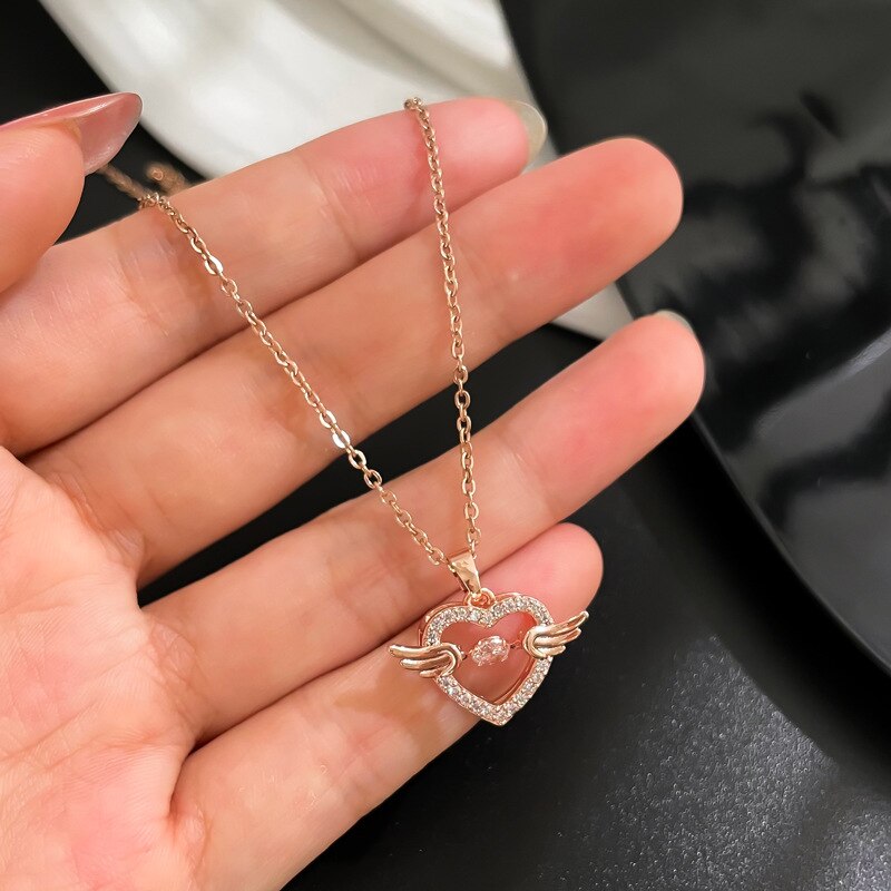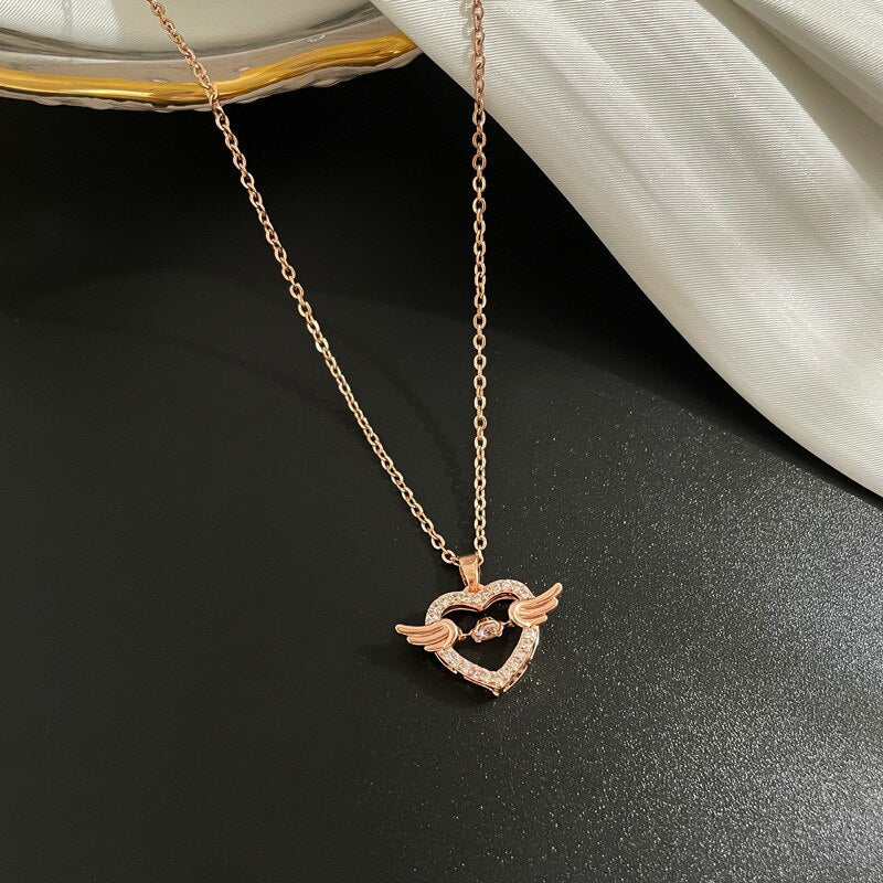 585 Gold Jewelry-Stainless Steel New Korean Elegant Cupid Love Heart Necklace For Women Ladies Fashion Eternal Love Choker Jewelry