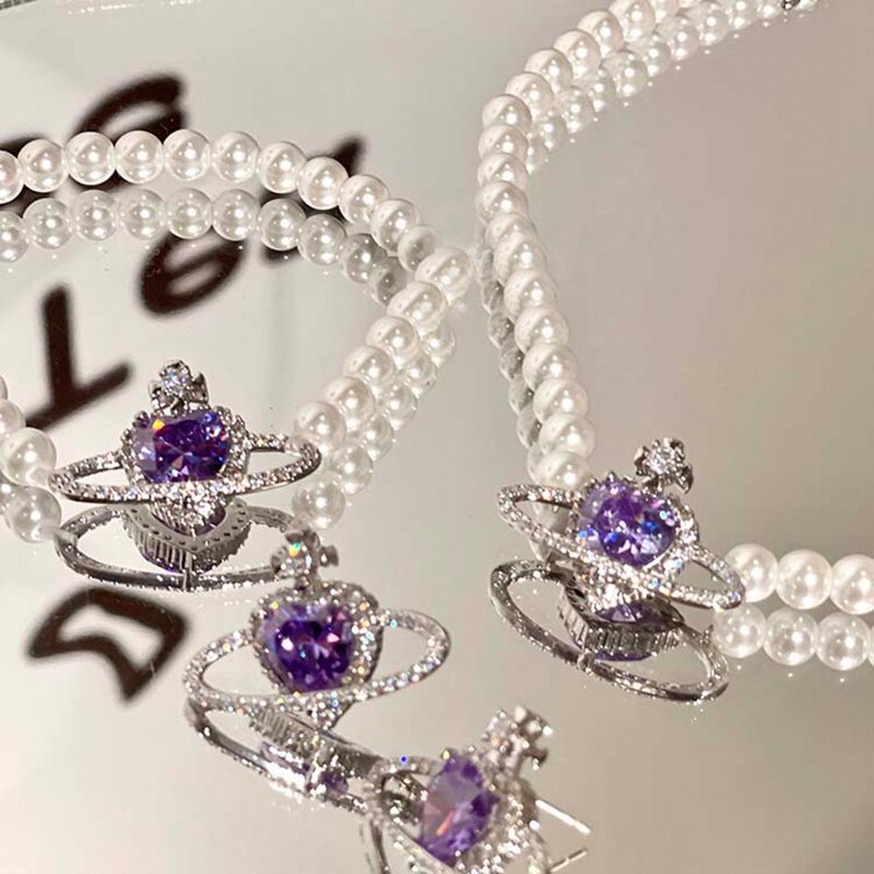 Korean Fashion Purple Heart Crystal Stud Earrings For Women Elegant Planet Rhinestone Boucle D'oreille Jewelry Gifts