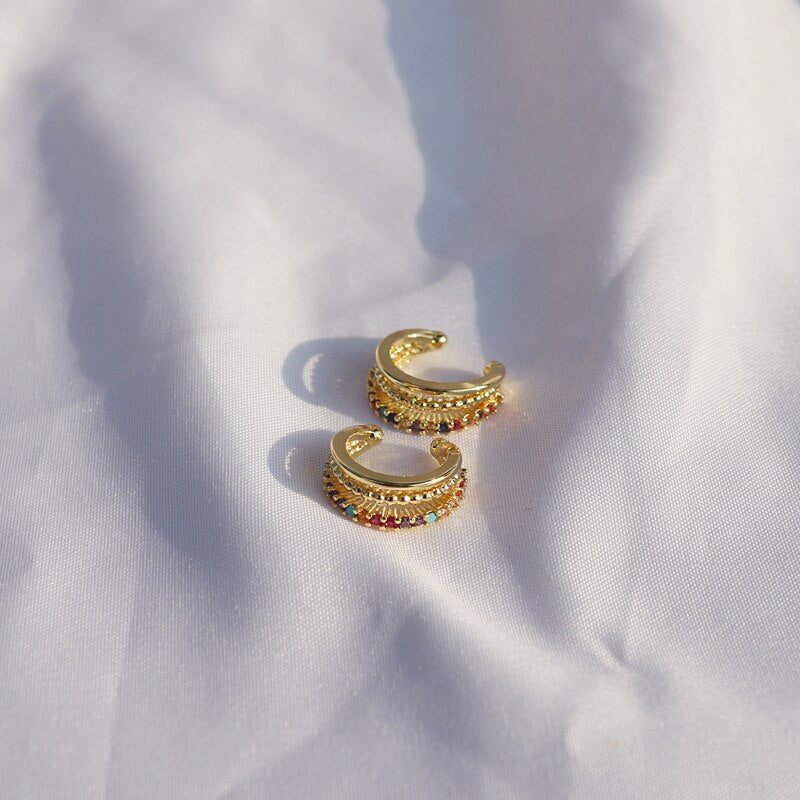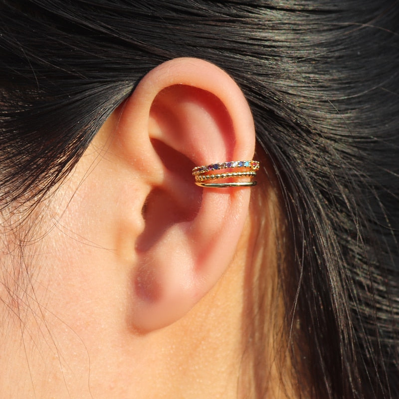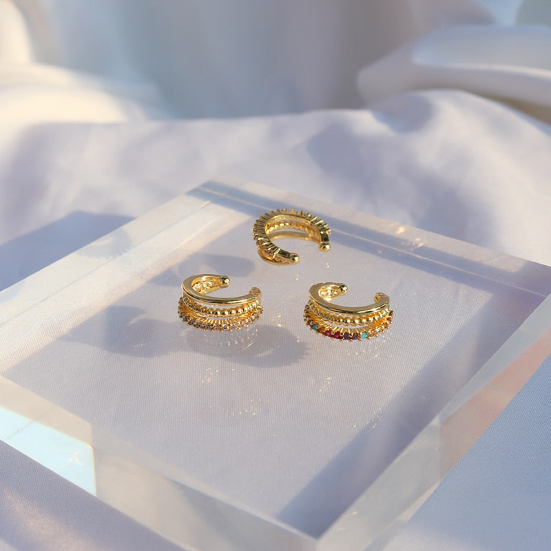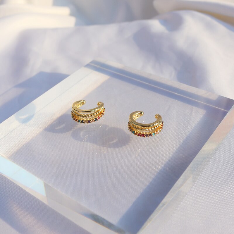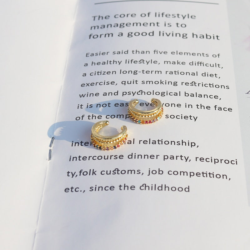 Fashion Earrings- Korean Fashion Rainbow Ear Cuff Set Earring for Women Gold Earcuffs Stackable Cartilage Clip on Earrings No Pierced Punk Jewelry