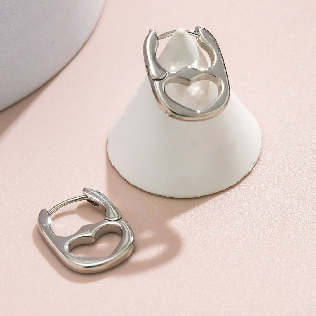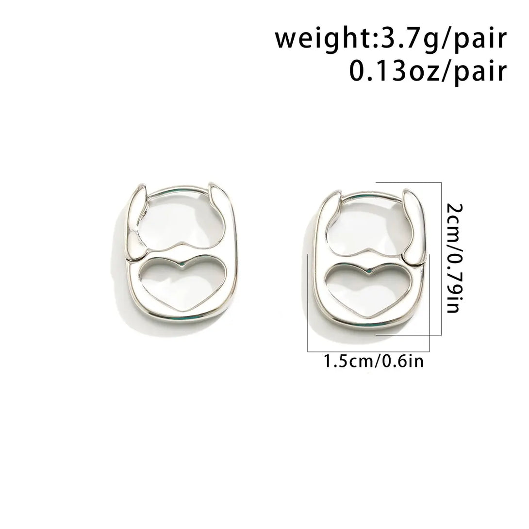 Korean Fashion Silver Color Hollow Double Heart Hoop Earrings for Women Punk Simple Earrings Ear Jewelry Accessories New