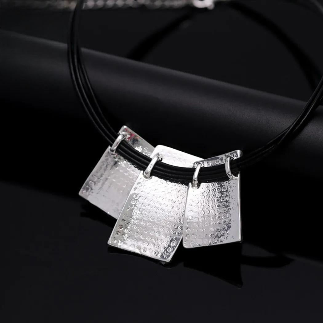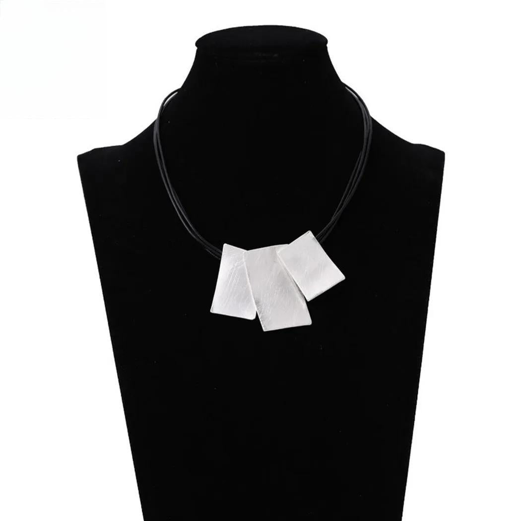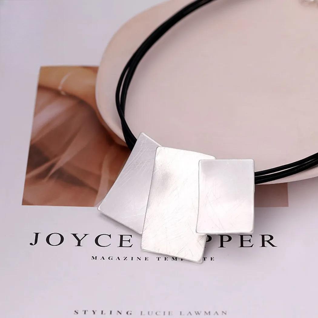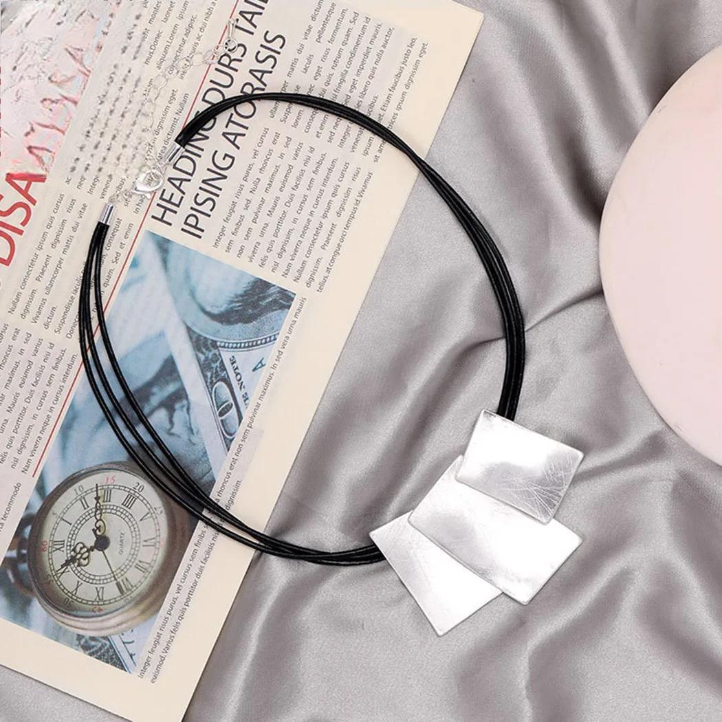 Korean Fashion Suspension Silver Color Square Long Collares Chains Neckalce for Women