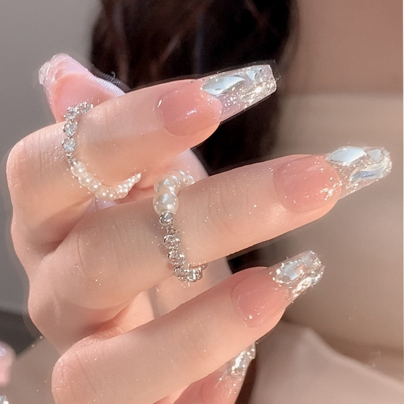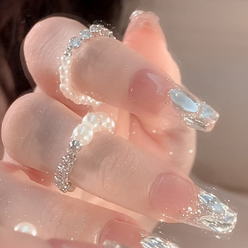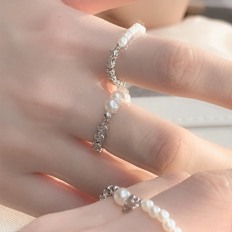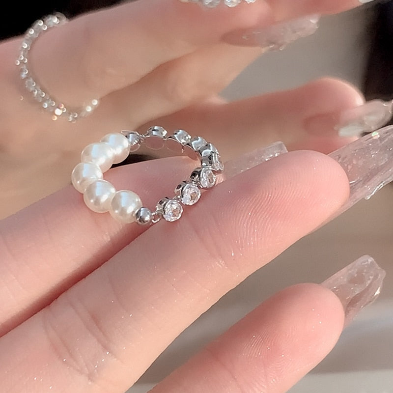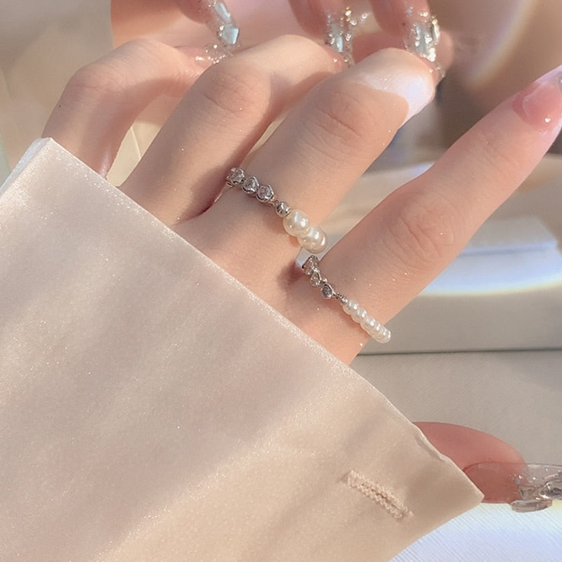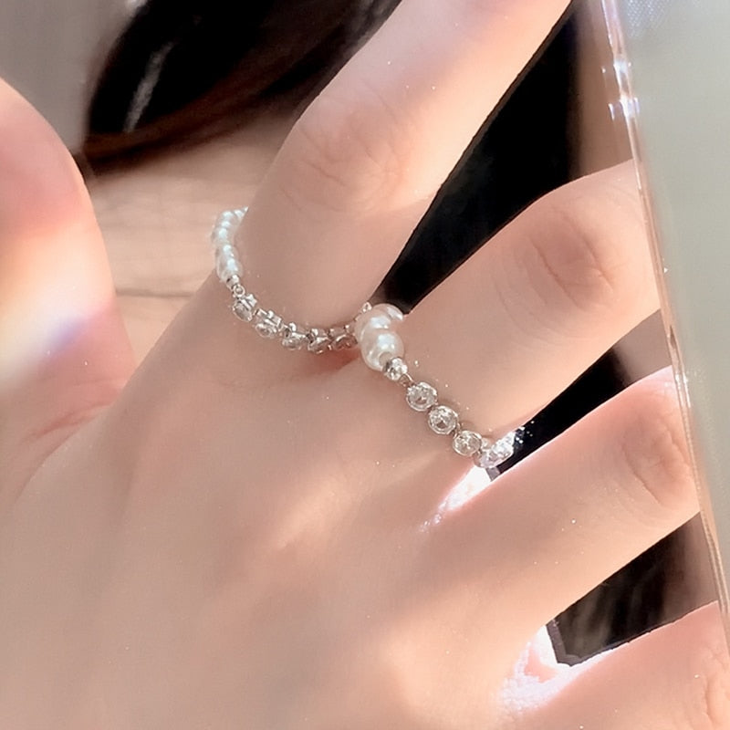Pearl Rings-Korean Freshwater Pearl Rhinestone Splicing Rings For Women Elastic Adjustable Index Finger Ring Jewelry Gifts