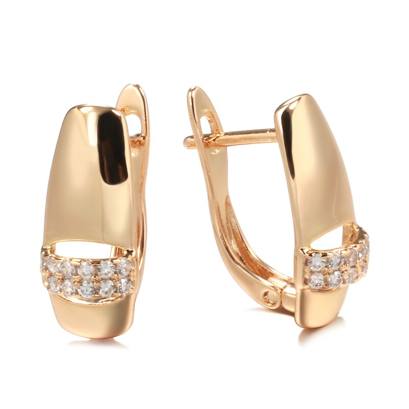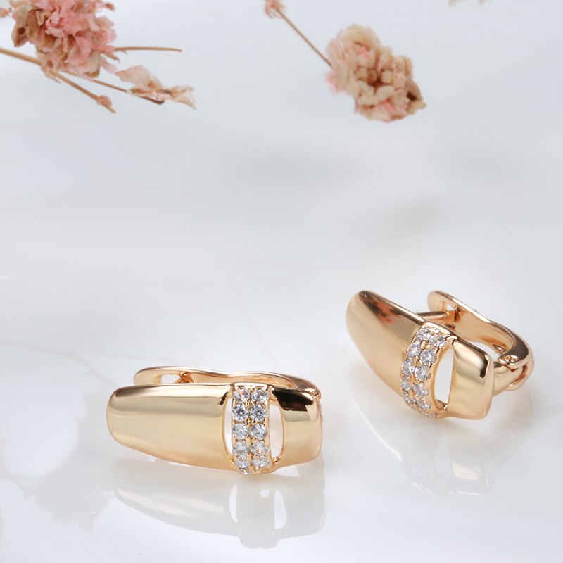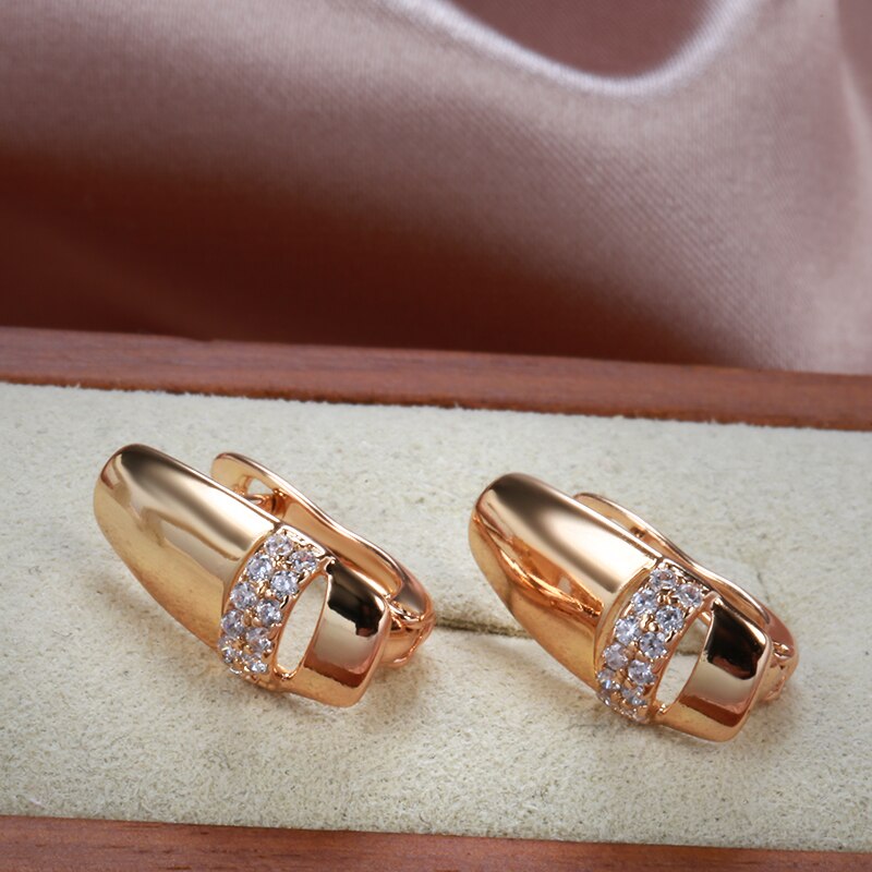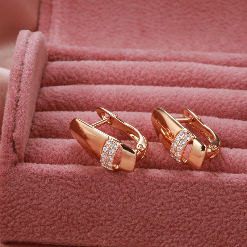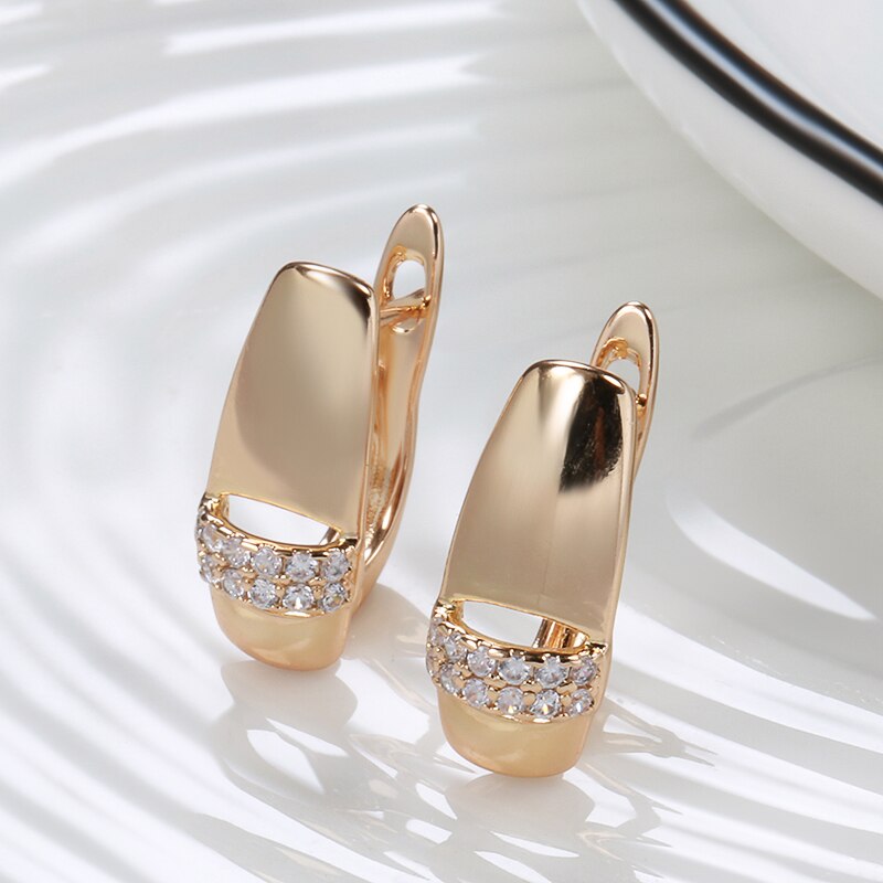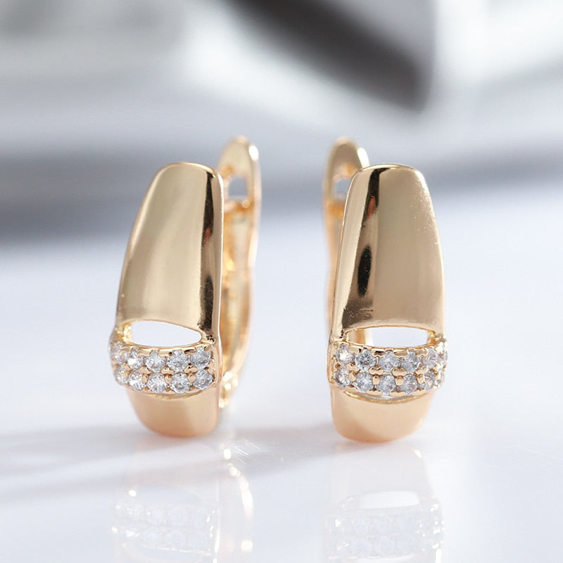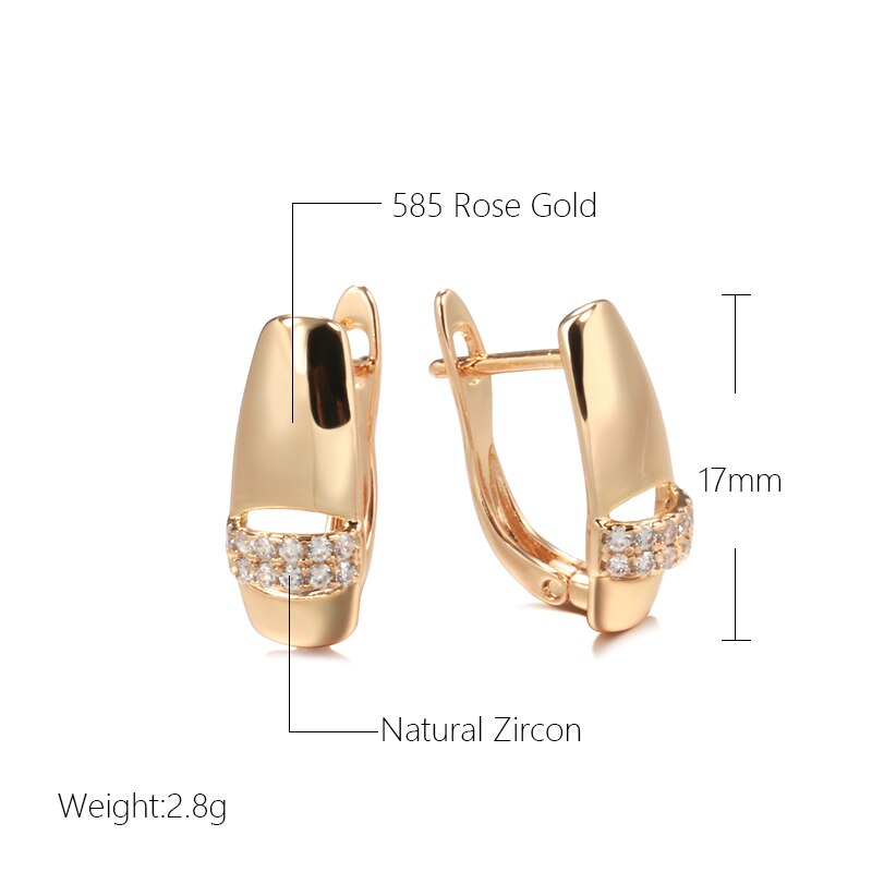585 Gold Jewelry-Korean Geometric Glossy Natural Zircon Women's Earrings 585 Rose Gold Luxury Clip Earrings Party Daily Wear Simple Jewelry