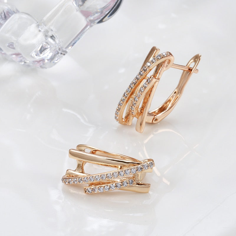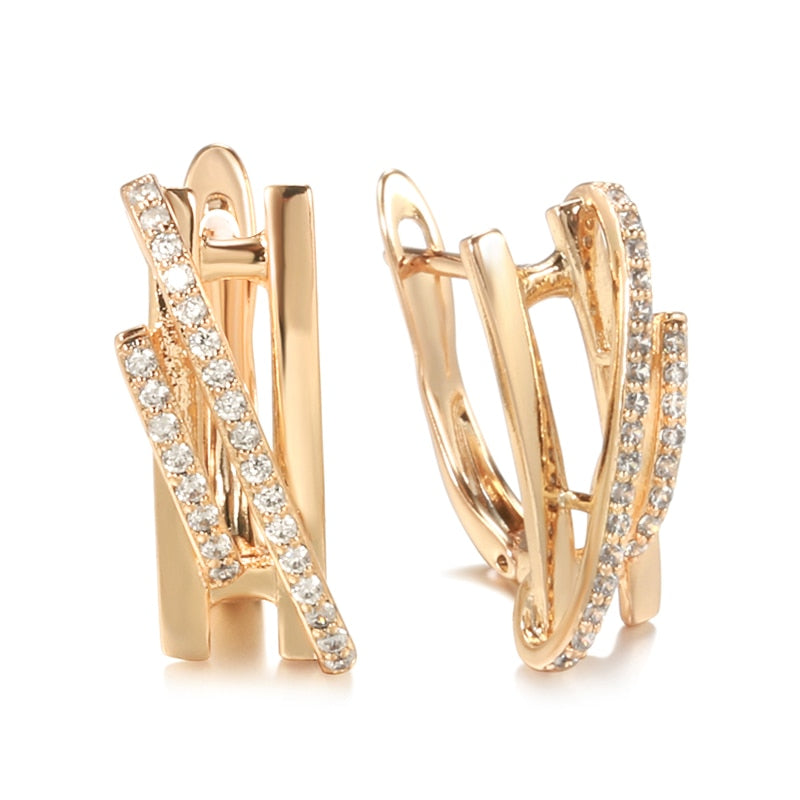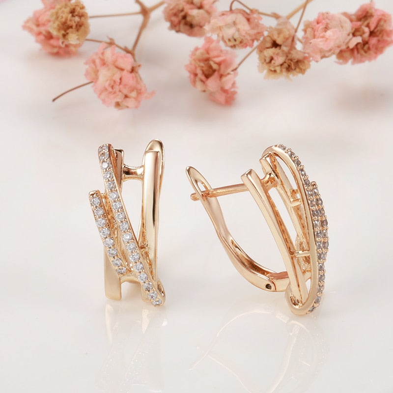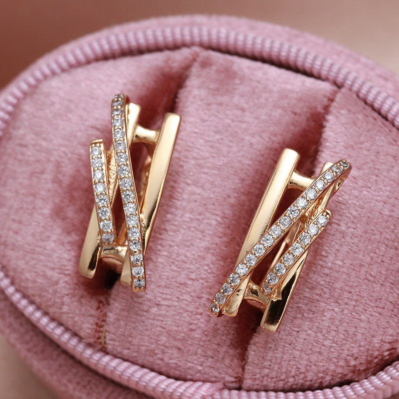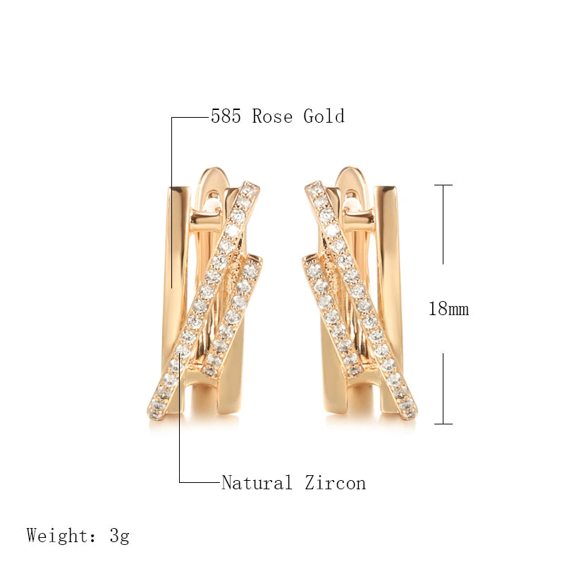 585 Gold Jewelry-Korean Geometric Hollow Double Twill 585 Gold Girl Earrings Natural Zircon Statement Jewelry Wedding Daily Earrings for Women