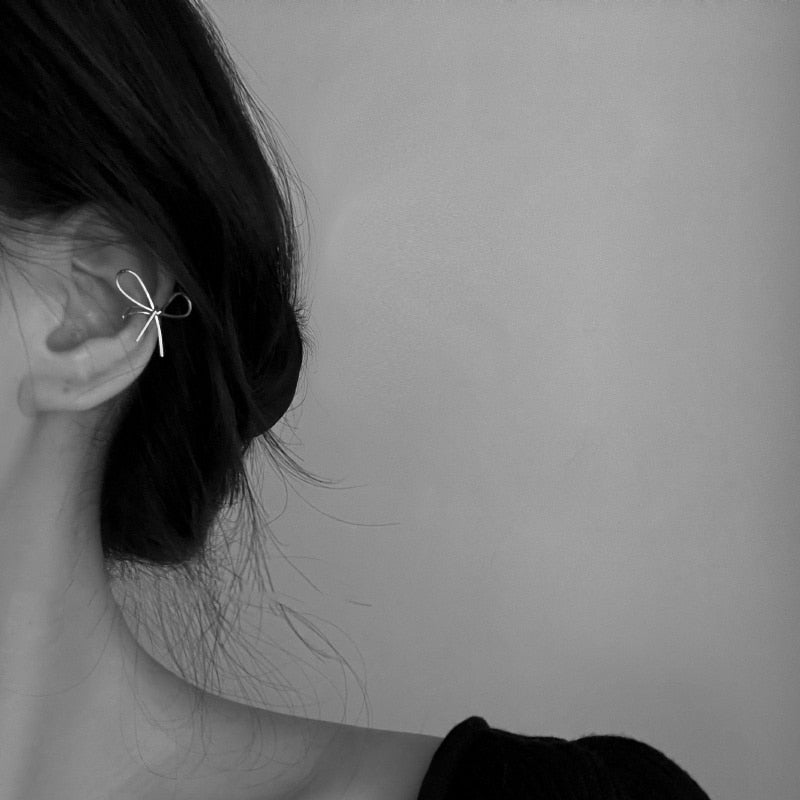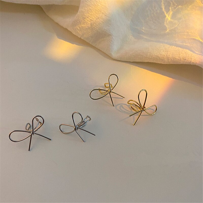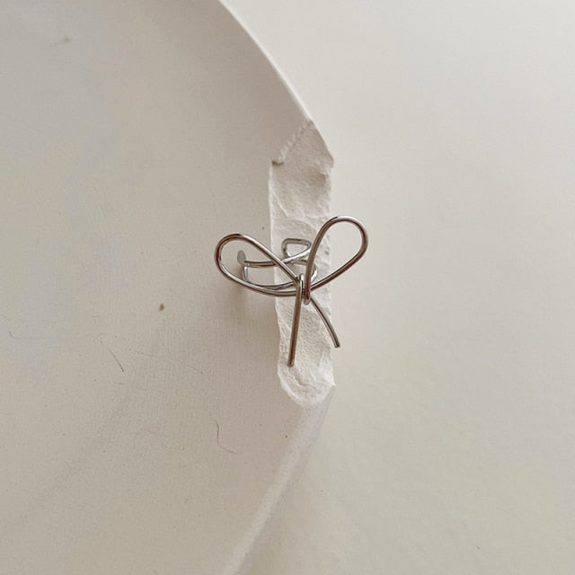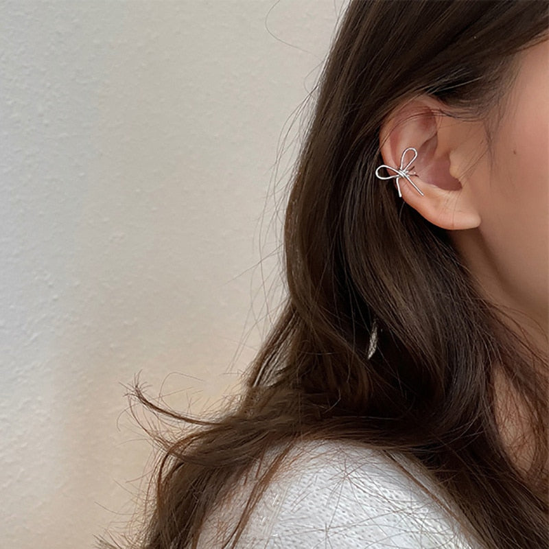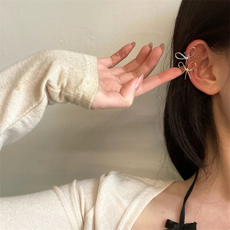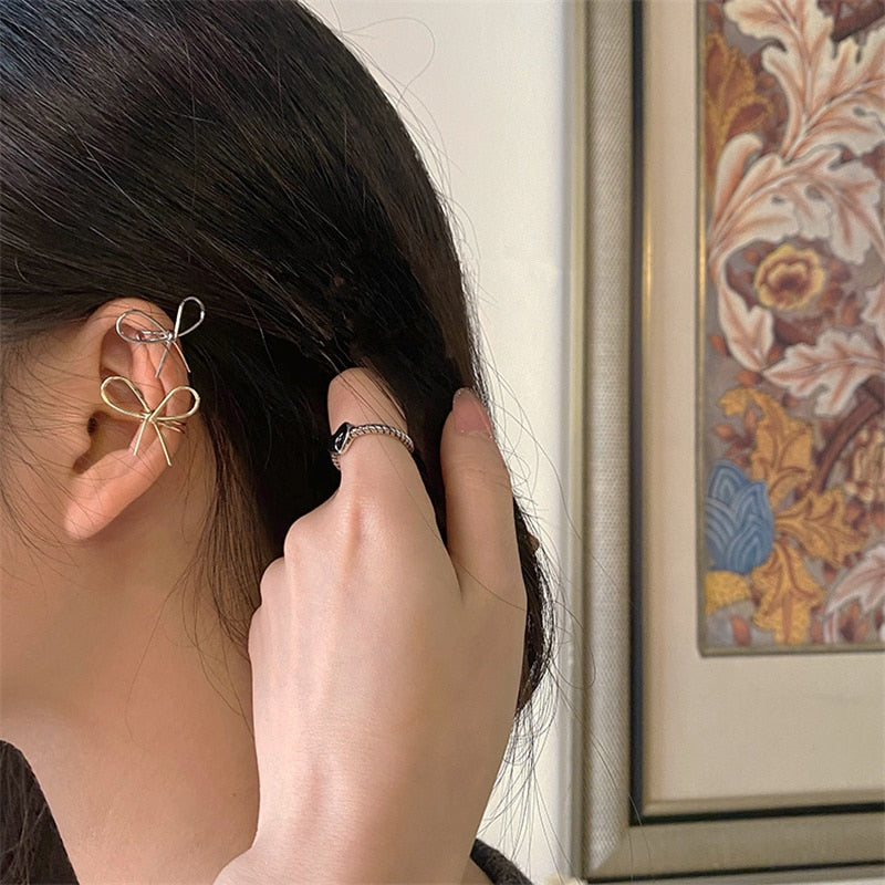 Fashion Earrings-Korean Gold Silver Color Metal Line Bow Ear Bone Clip Non-Pierced Simple Irregular Geometric Hollow Earrings for Women