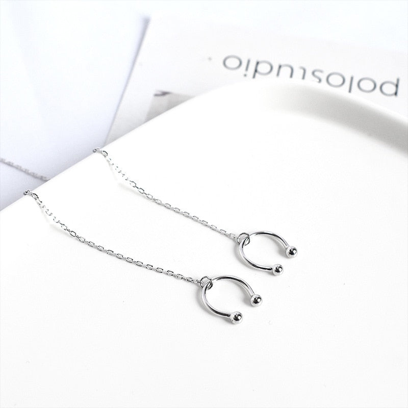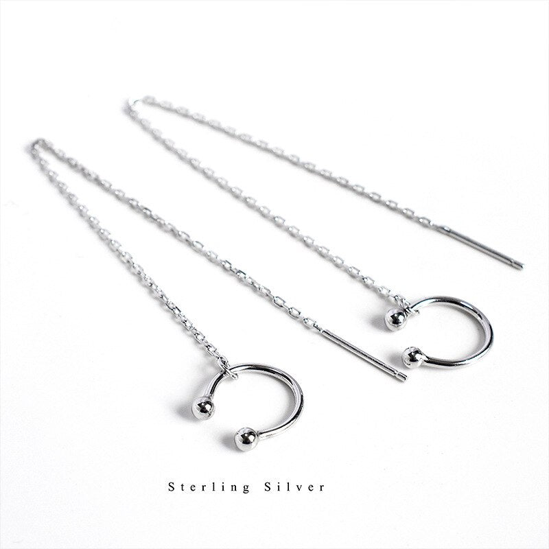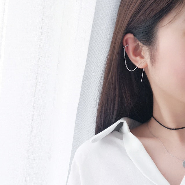 Fashion Earrings- Korean Long Silver Color Tassel Ear Cuff Earrings for Women Ear Line Sweet Small Fresh C Shaped Ear Bone Clip Fashion Jewelry