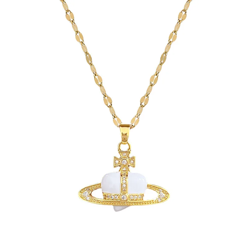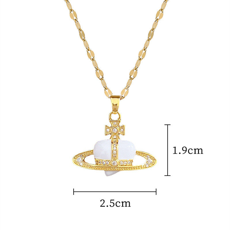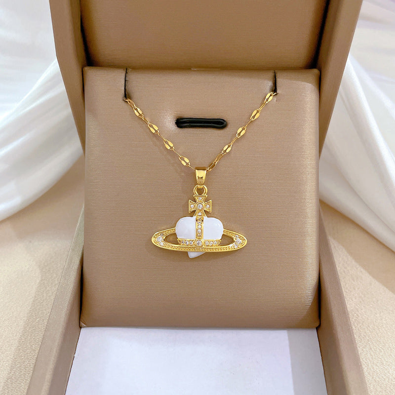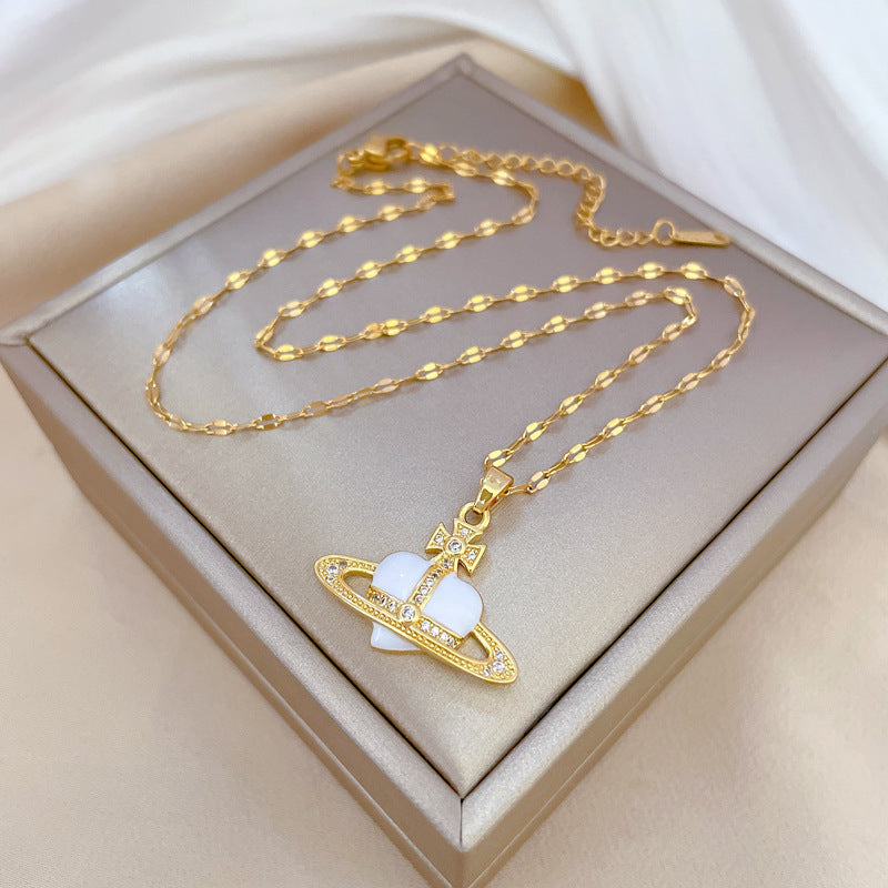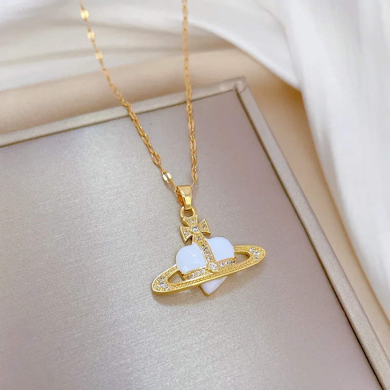 585 Gold Jewelry-Stainless Steel Korean Planet Love Crystal Pendant Necklace For Women Girls Wedding Birthday Anniversaries Jewelry Gifts