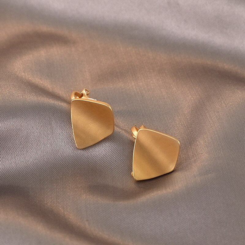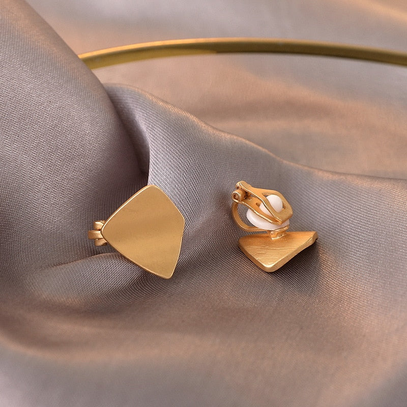 Fashion Earrings-Korean Style Simple Geometric Matte Gold Clip on Earrings Temperament Irregular Ear Clips for Without Pierced Female Jewelry