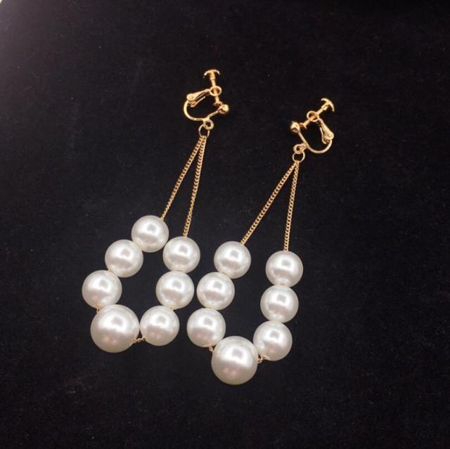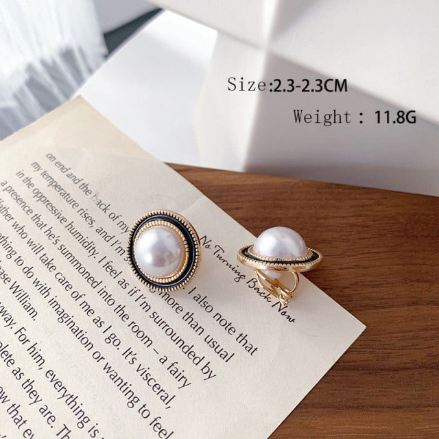 Fashion Earrings- Korean Style Simulated Pearl Big Round Clip on Earrings Non Pierced Baroque Pearl Ear Clip for Women Jewelry