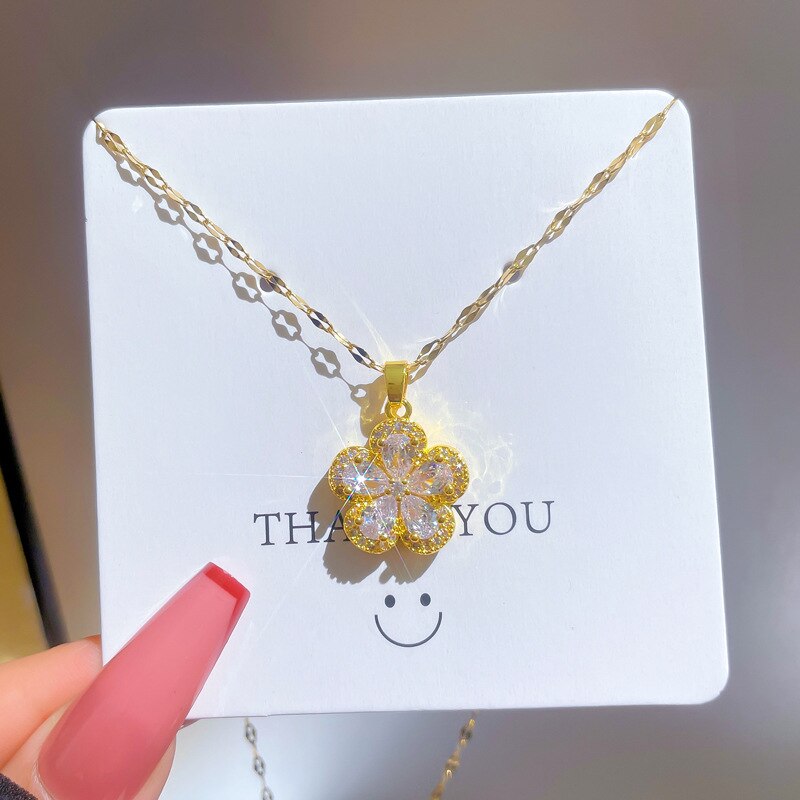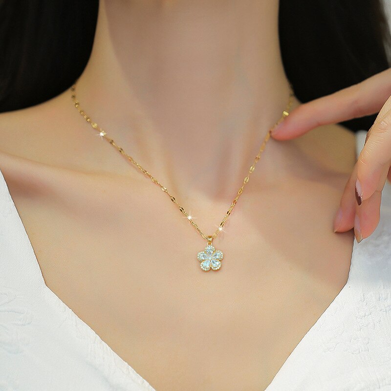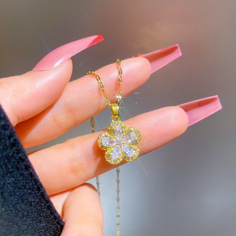 585 Gold Jewelry-Stainless Steel Korean Version Simple AAA Zirconia Flower Pendant Clavicle Chain Necklace For Women Charm Wedding Jewelry