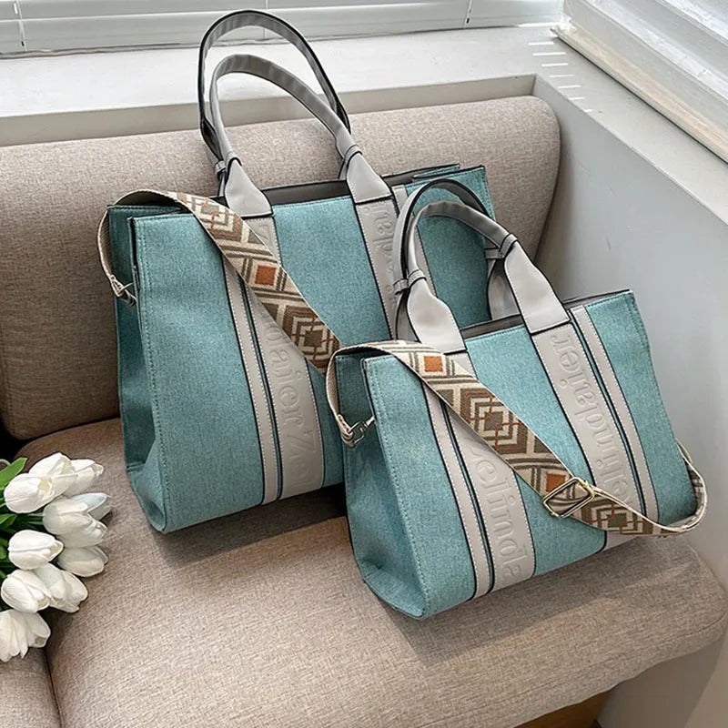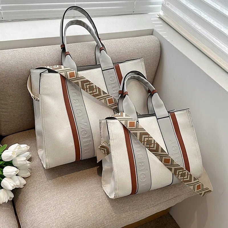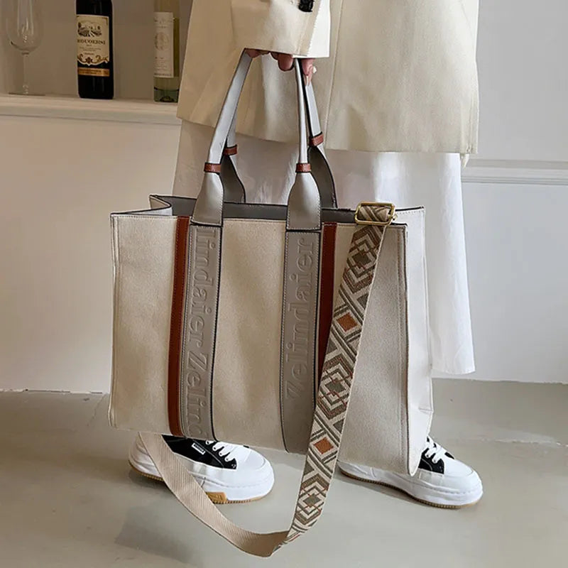 Large Capacity Portable Canvas Handbags Wide Shoulder Strap Women New Simple Commuter Crossbody Bags Versatile Shopping Storage