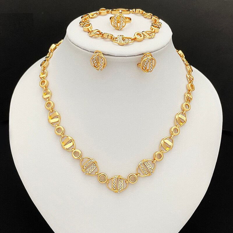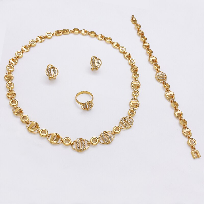 Afraic Jewelry-24k Latest Italian Gold Color Jewelry Set Women Necklace Earrings