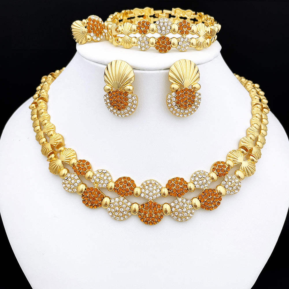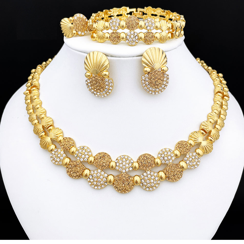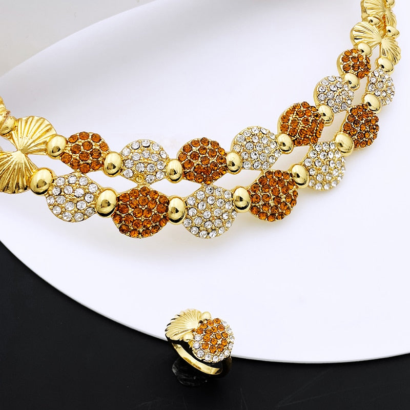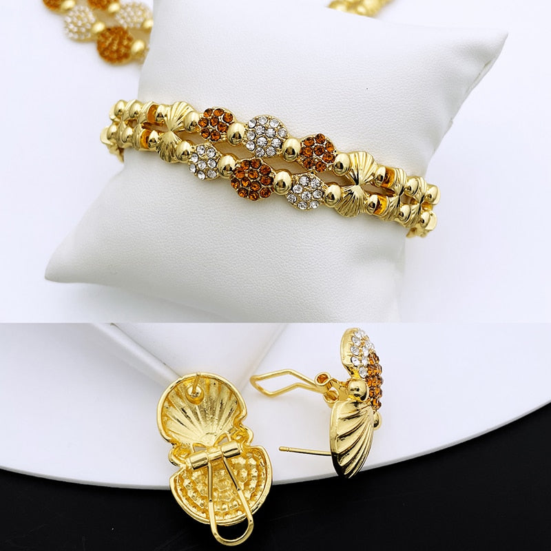 latest Italian Ladies Fine Jewelry Sets Gold Color Women Necklace Earrings African Big Jewelry Wedding Party Gift