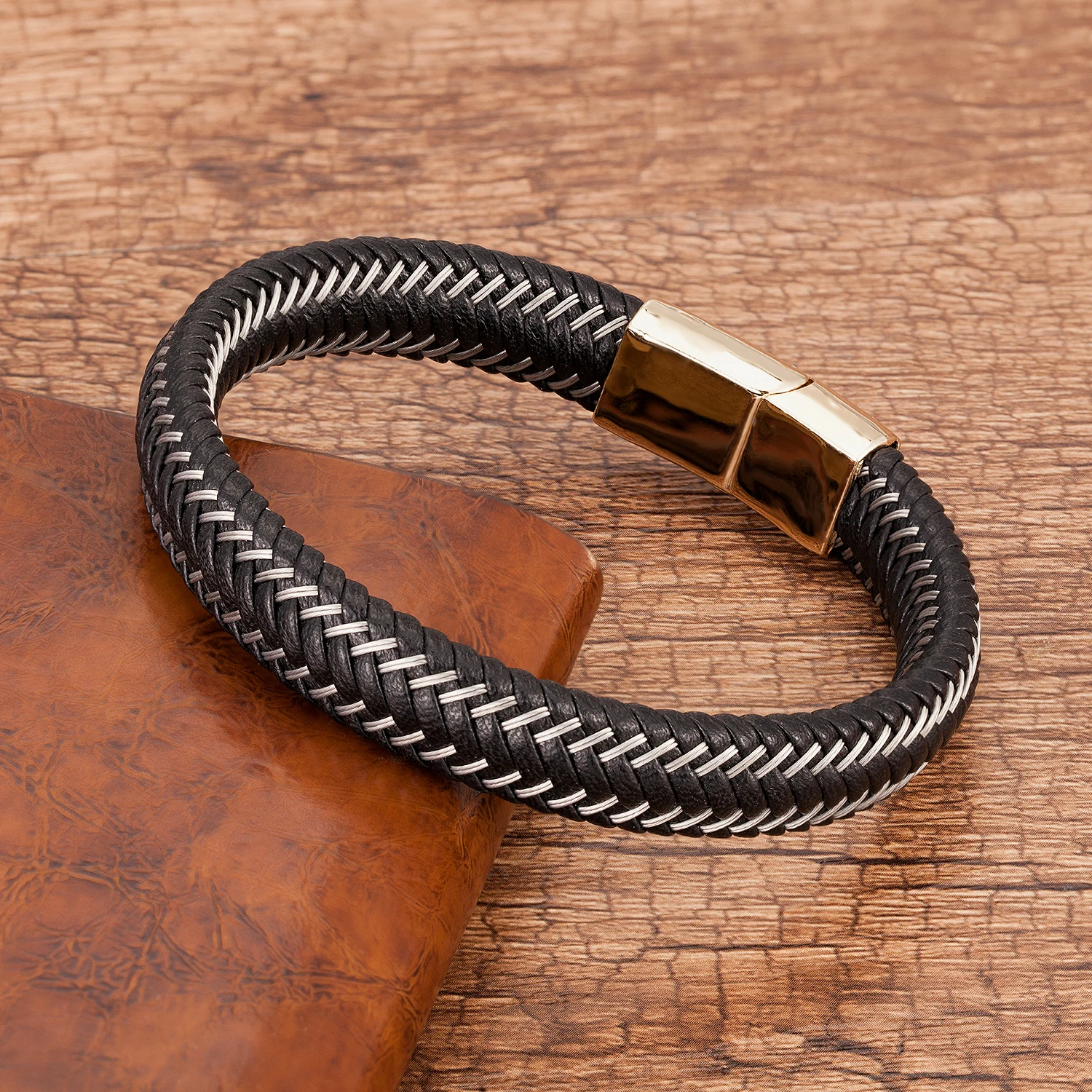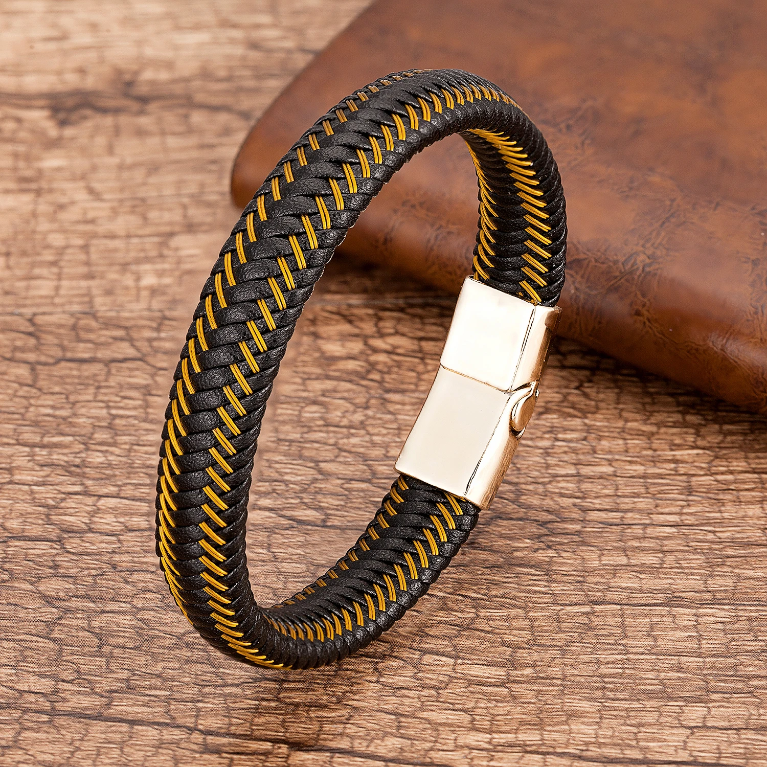 Leather Bracelet -Classic Braided Leather Jewelry For Women 2022 Leather Chain Bracelet Zinc Alloy Gold Plated Bangles For Man Christma Gift