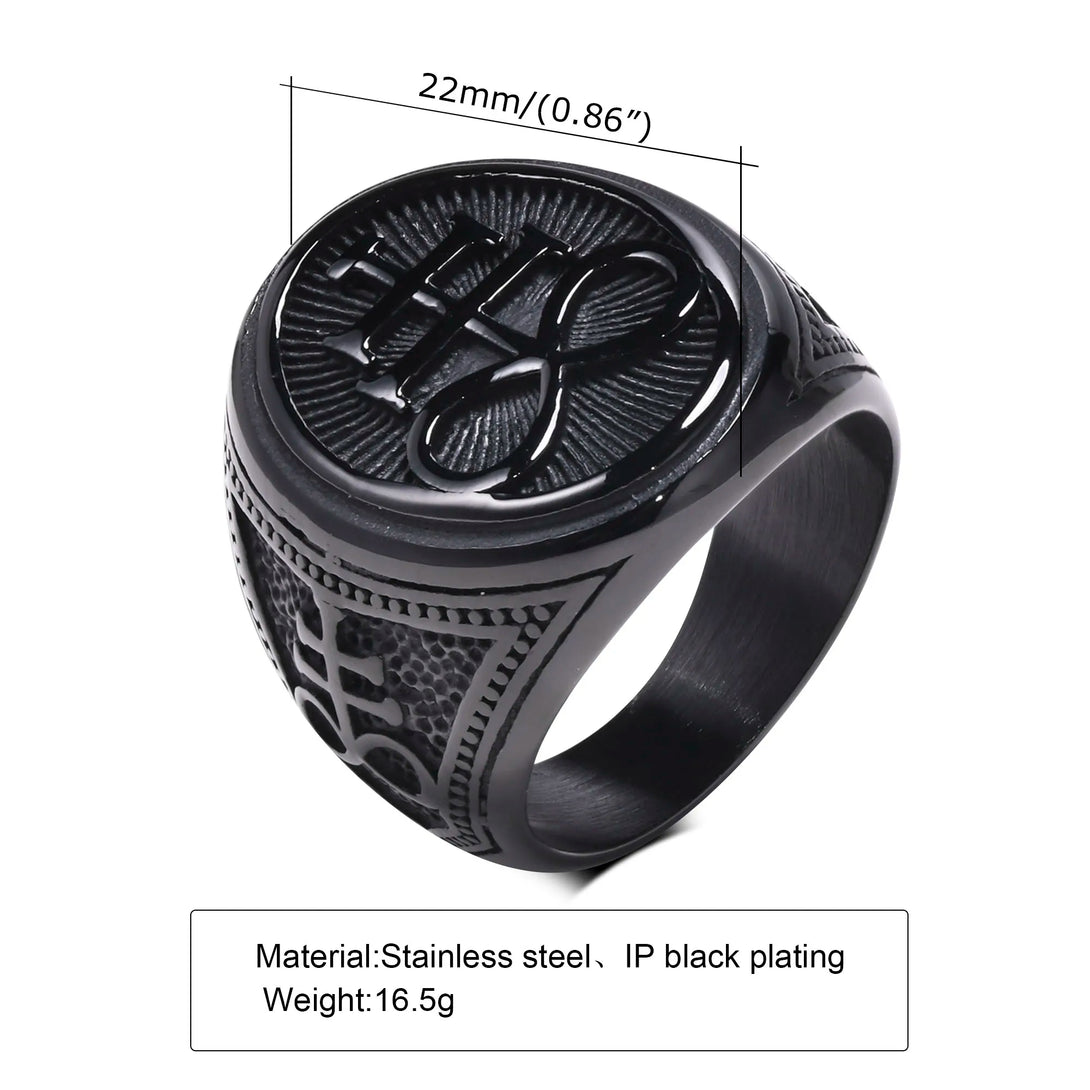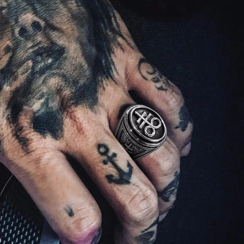 Leviathan Cross Rings, Men Signet Ring, Stainless Steel Lucifer Sigil Satanism Ring,Brimstone Wiccan Jewelry