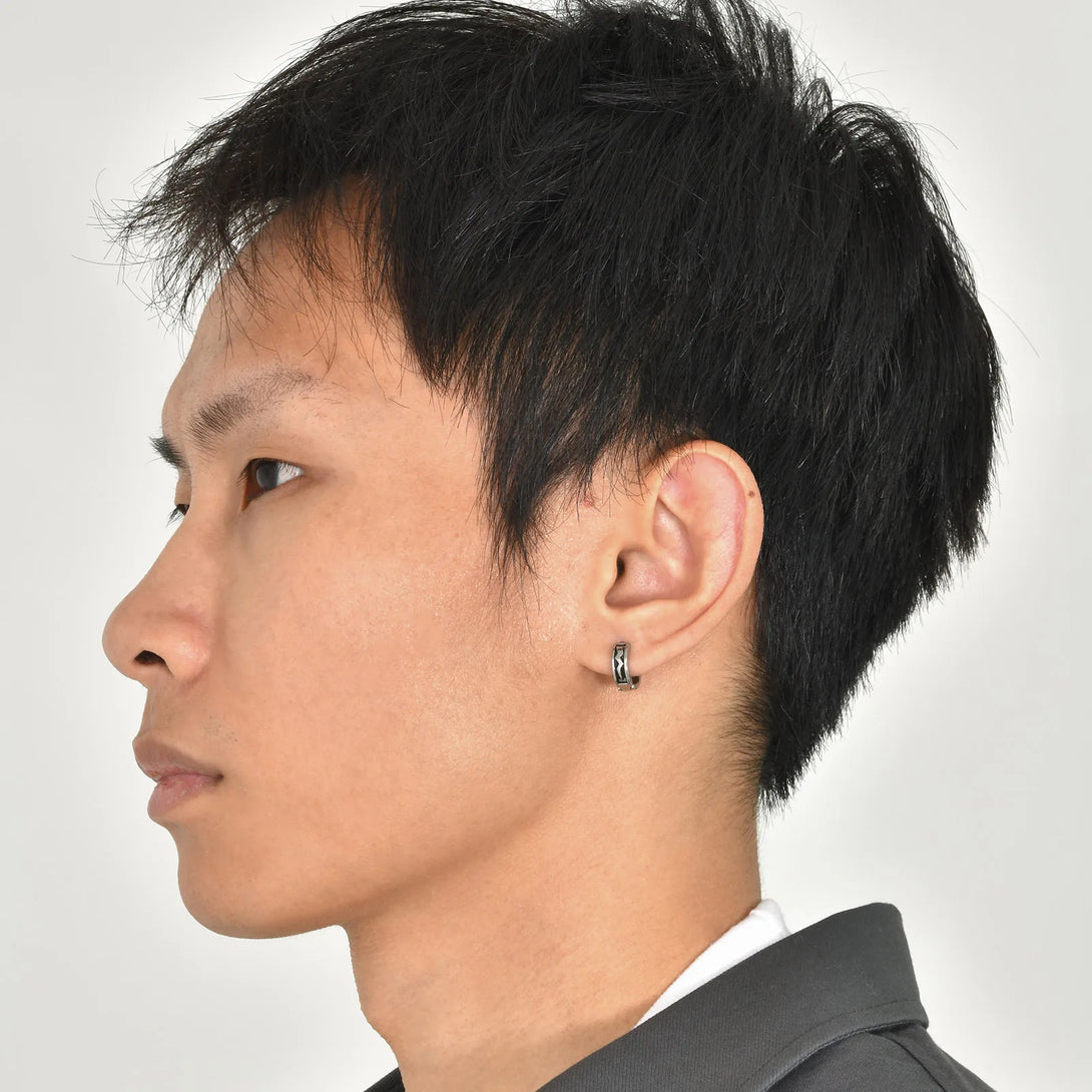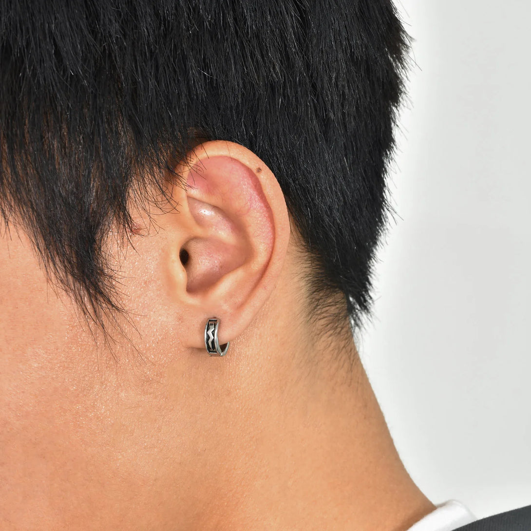 Lightning Hoop Huggie earrings for Men Boys, Anti Allergy Stainless Steel Rock Punk Round Earring Gifts for BBF