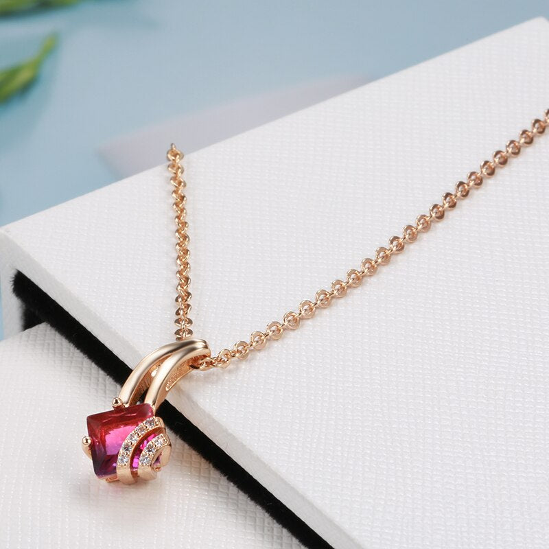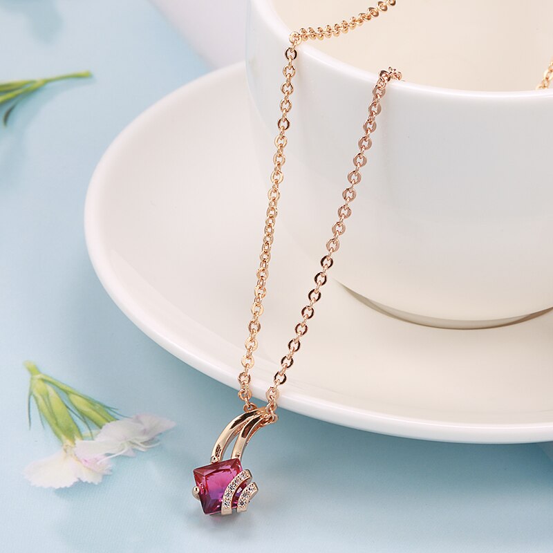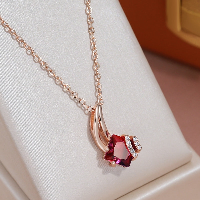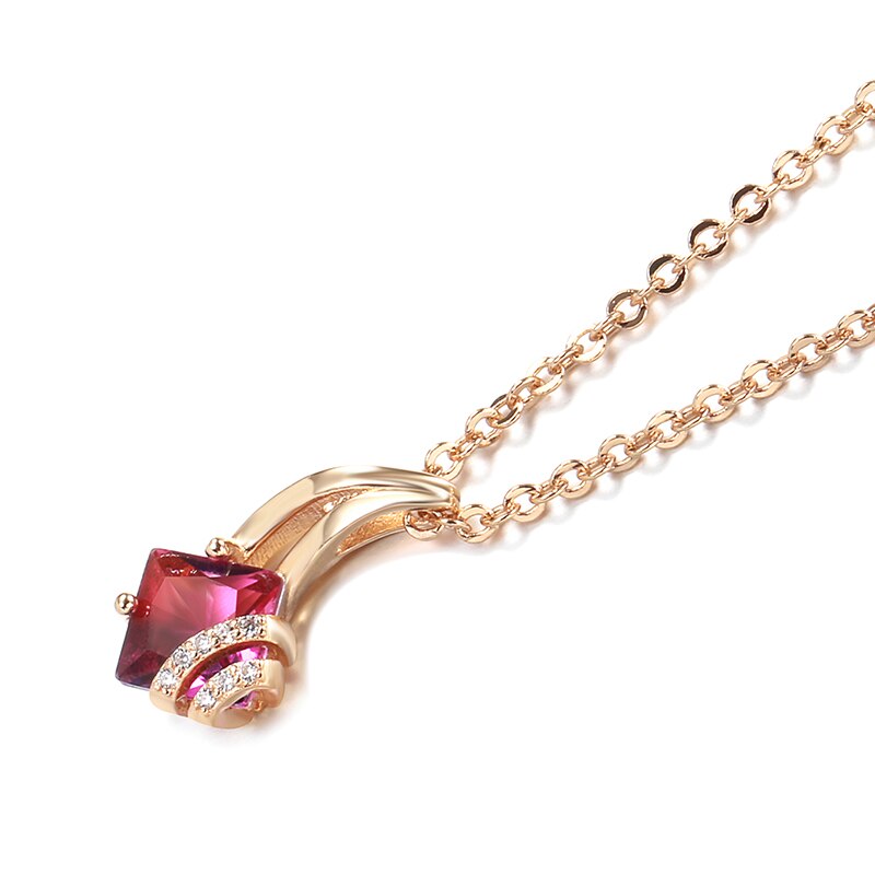 585 Gold Jewelry-Little Tail Pendant Necklace 585 Rose Gold Color Gradient Red Zircon Inlay White Crystal Long Chain Wedding Jewelry