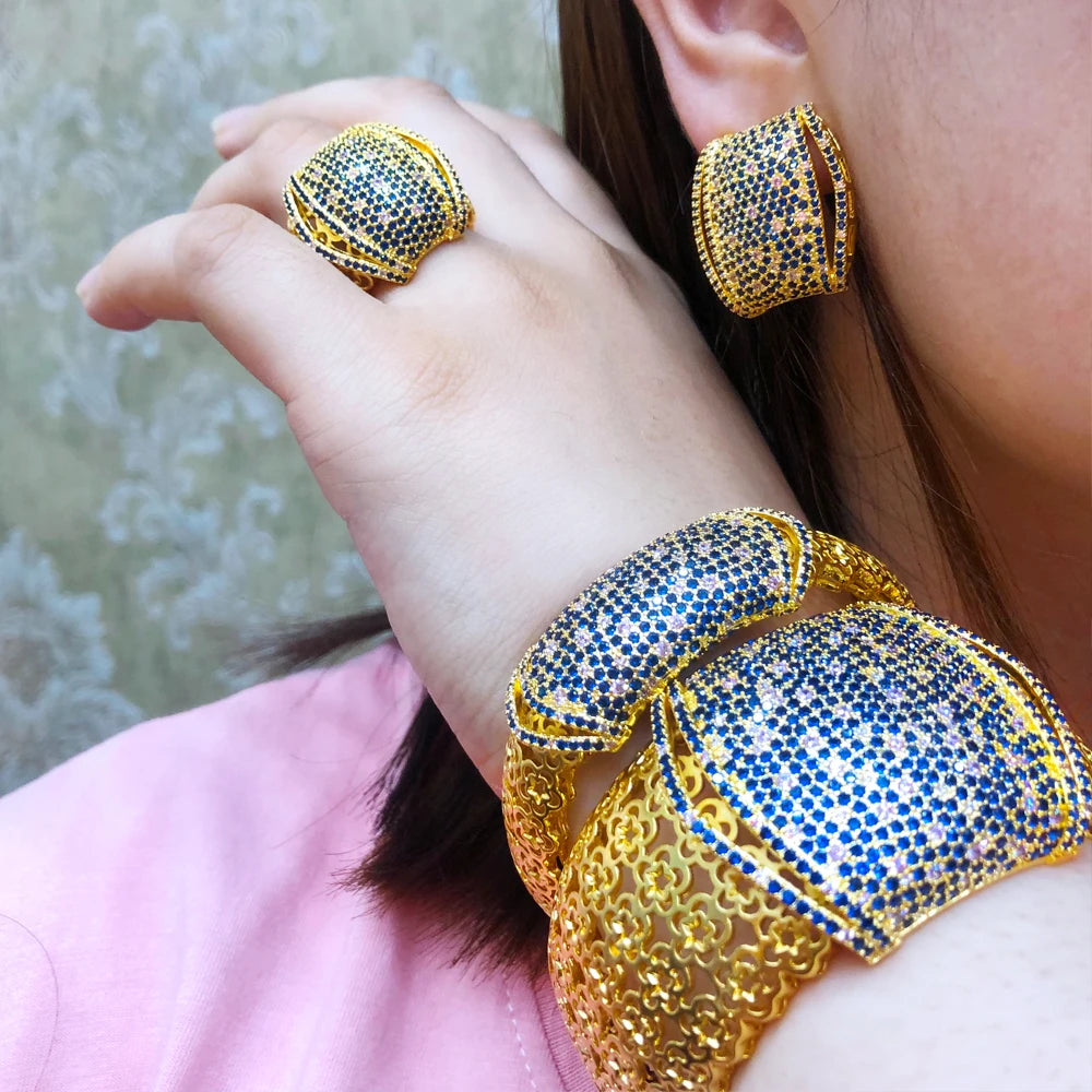 Brand Luxury 5PCS Bracelet Ring Earring Set For Women Wedding Bridal Zircon African/Indian/Dubai Bridal Jewelry Set