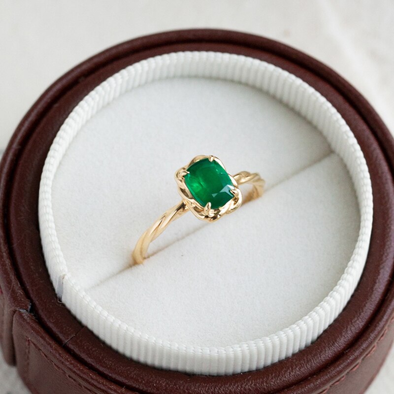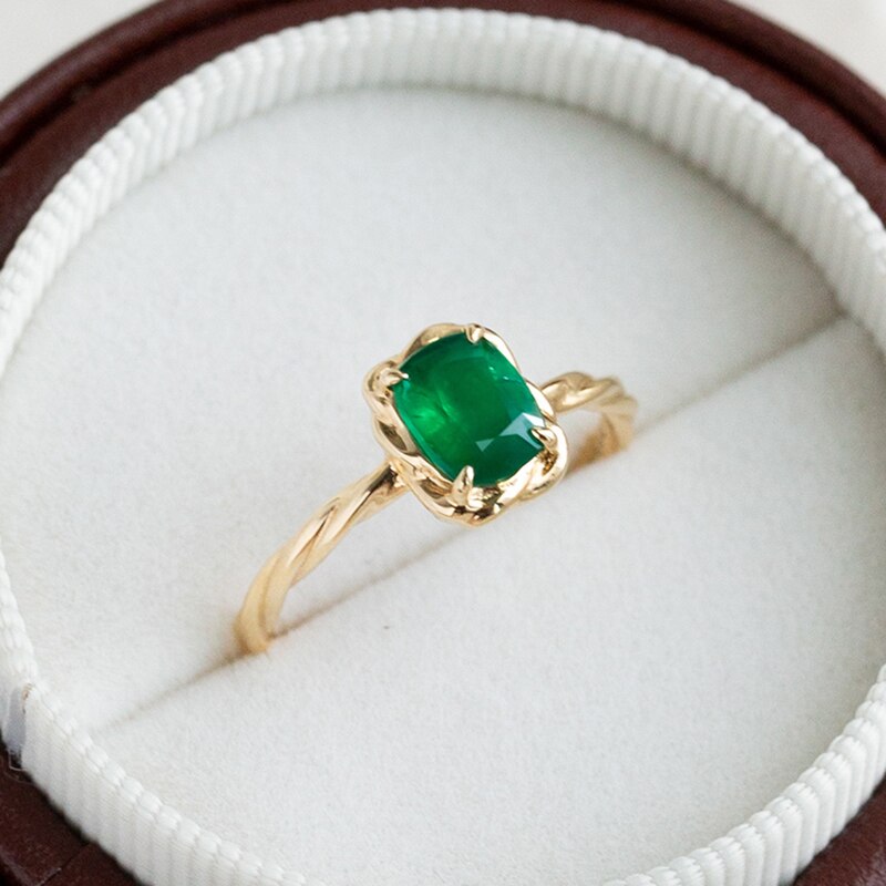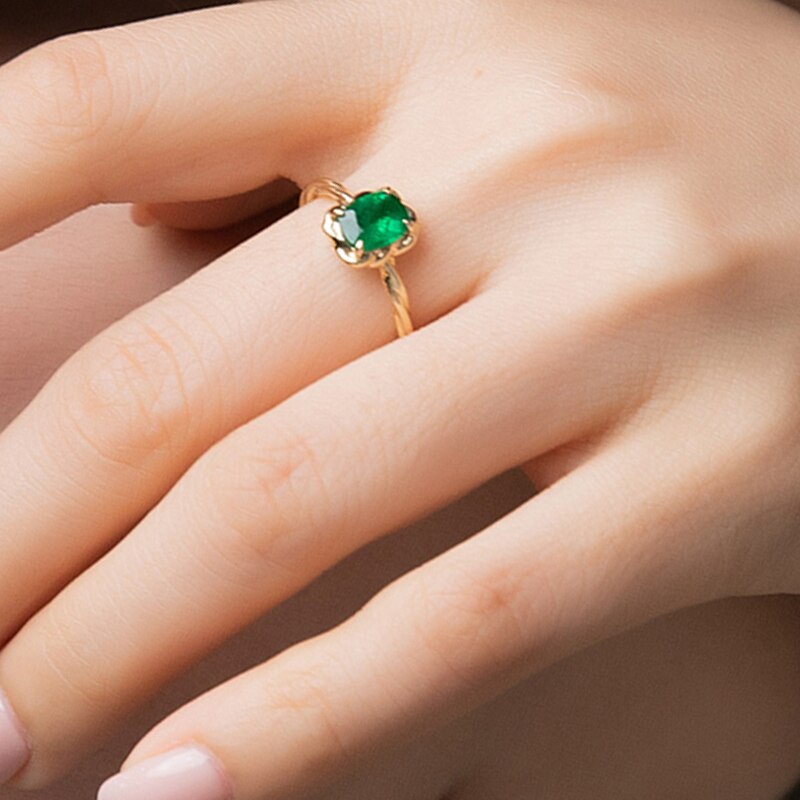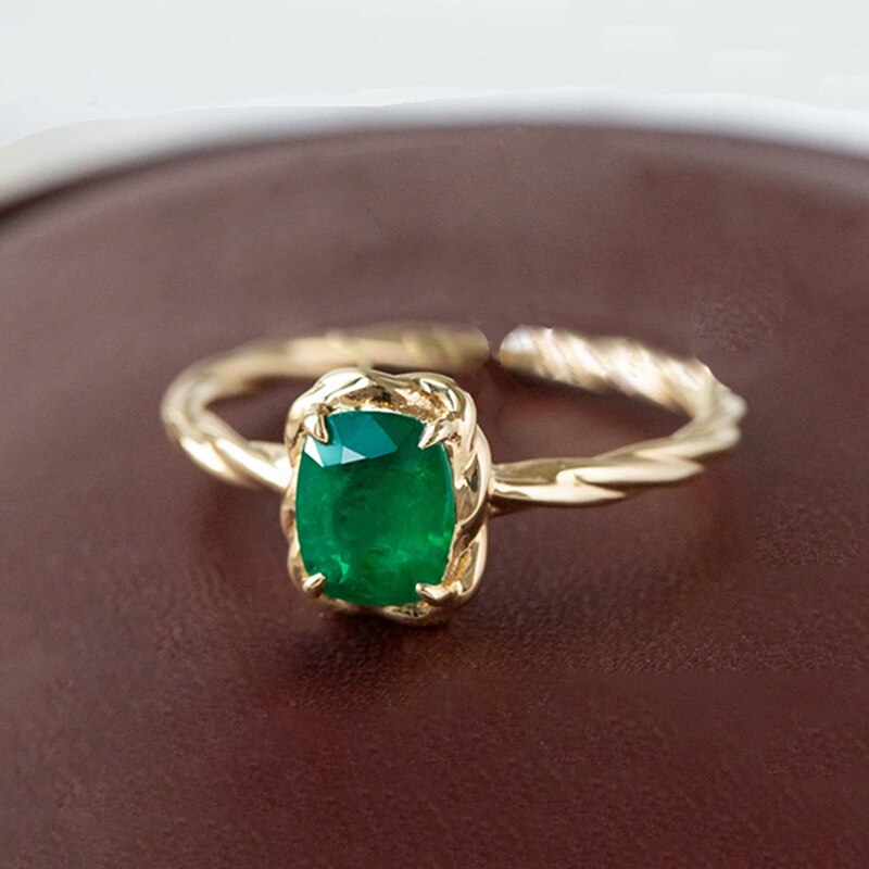 Cocktail Ring-Original Design S925 Silver Gold Plated Inlaid Emerald Gem Oval Elegant Light Luxury Charm Palace Style Ladies Ring