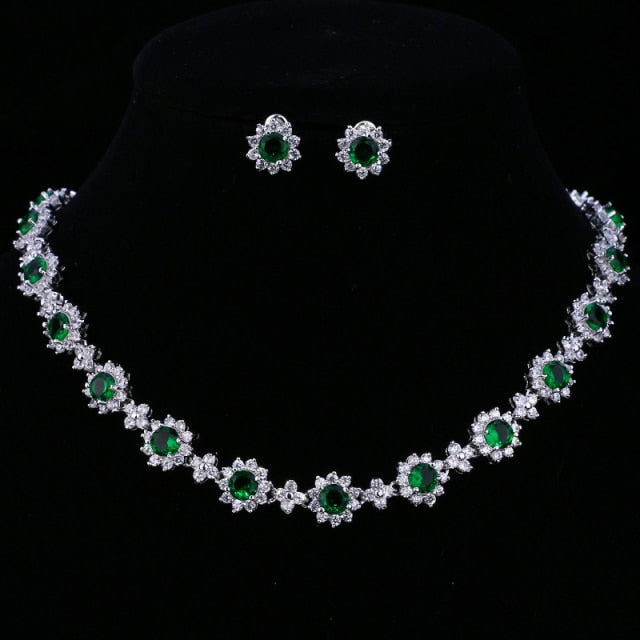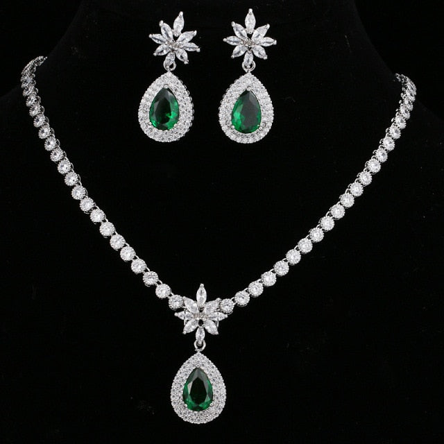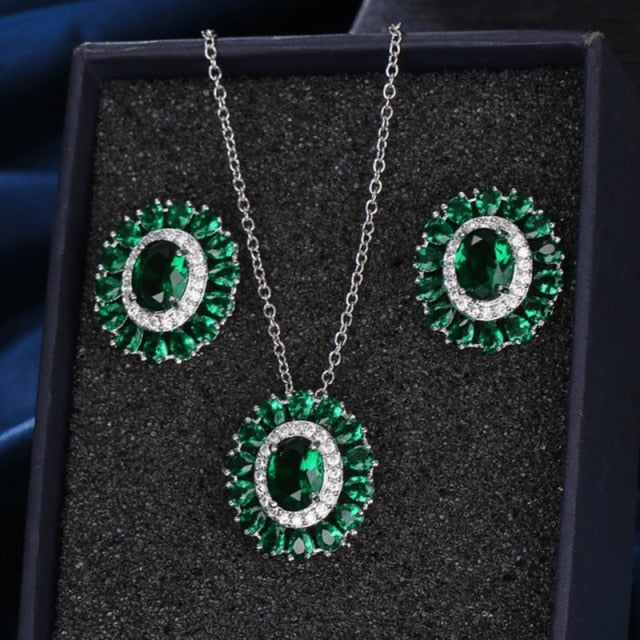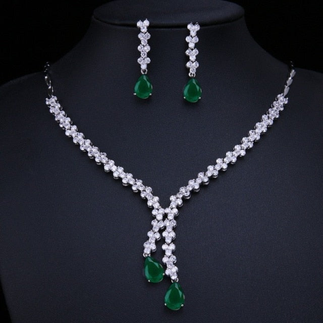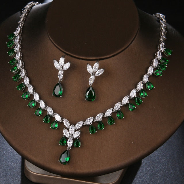 Jewelry set- Luxury Emerald Green Necklace And Earring Set AAA Cubic Zirconia Jewelry Set for Women Bridal Jewelry Set Gift for Wife