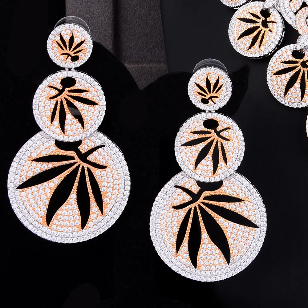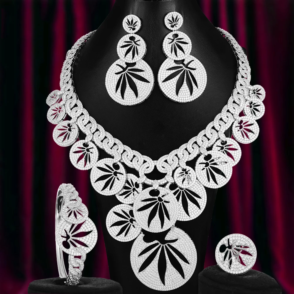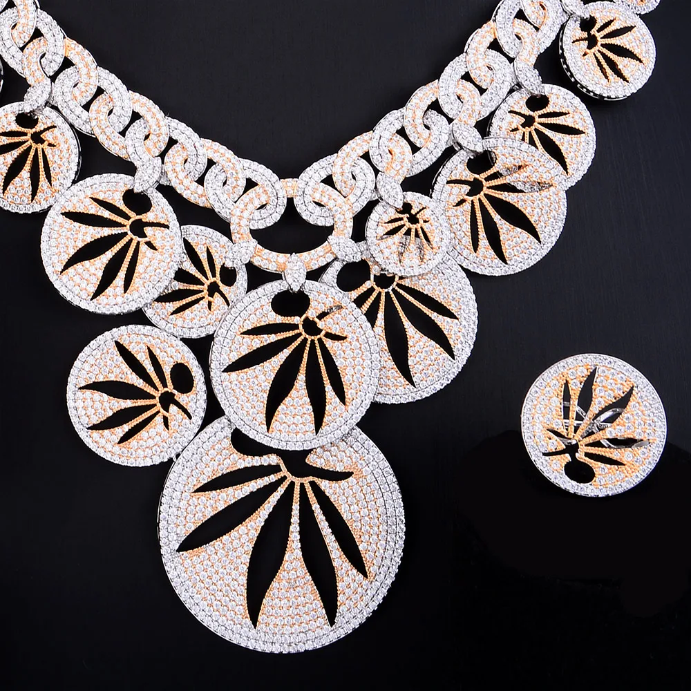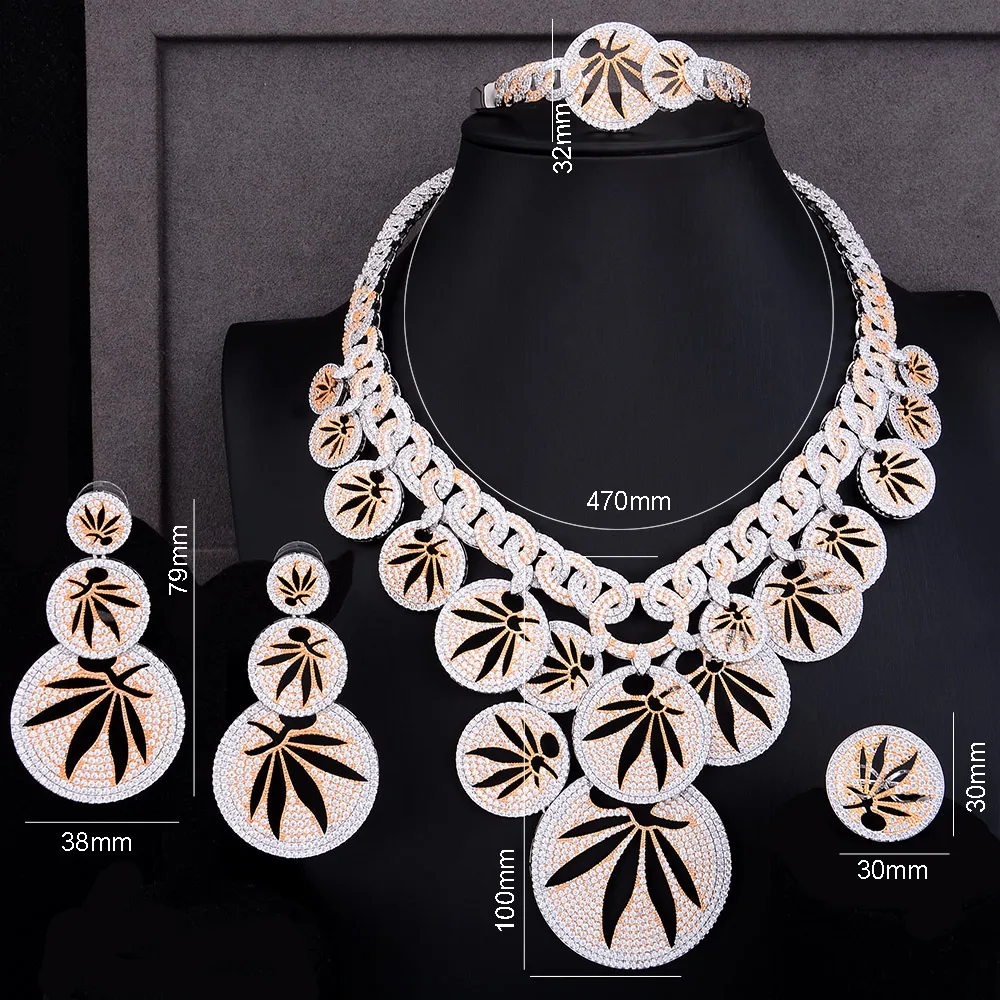 Luxury Exclusive Leaf Necklace Bangle Earrings Ring Jewelry Set for Bridal Wedding Women